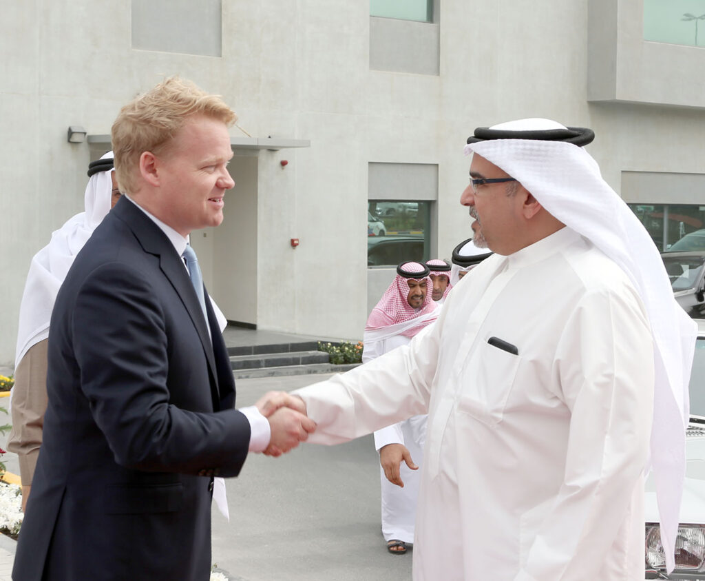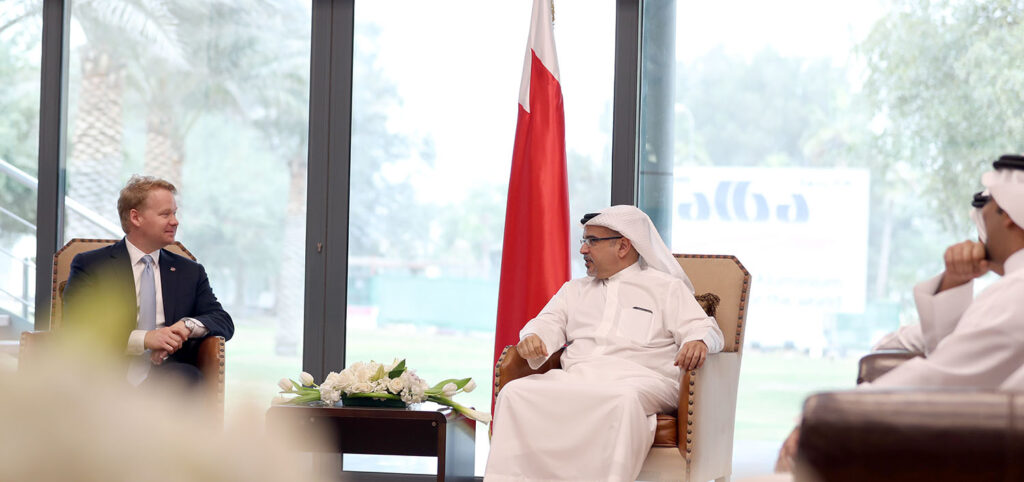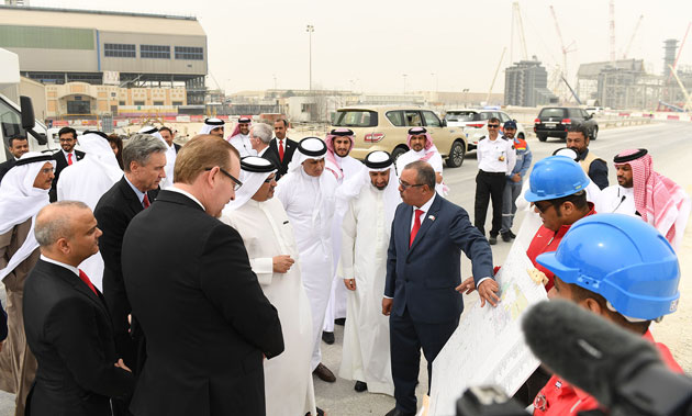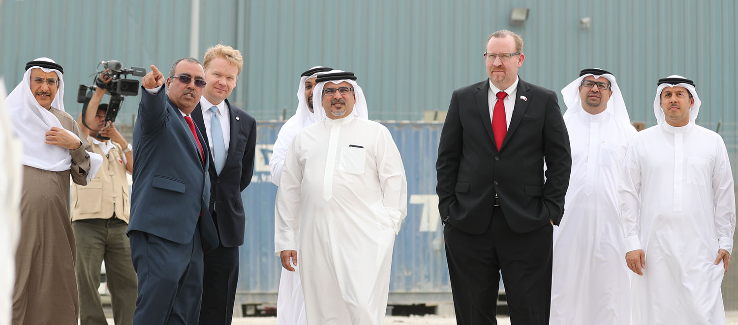 HRH the Crown Prince was welcomed by Shaikh Khalid bin Abdulla Al Khalifa, Deputy Prime Minister and Chairman of Mumtalakat, Chairman of Alba’s board of directors, Shaikh Daij bin Salman bin Daij Al Khalifa, and the CEO of Bechtel Group, Brendan P. Bechtel.