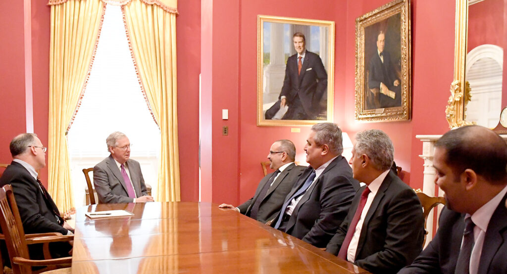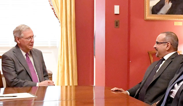 His Royal Highness Prince Salman bin Hamad Al Khalifa, Crown Prince, Deputy Supreme Commander and First Deputy Prime Minister, today met with the United States Senate Majority Leader, Senator Mitch McConnell.