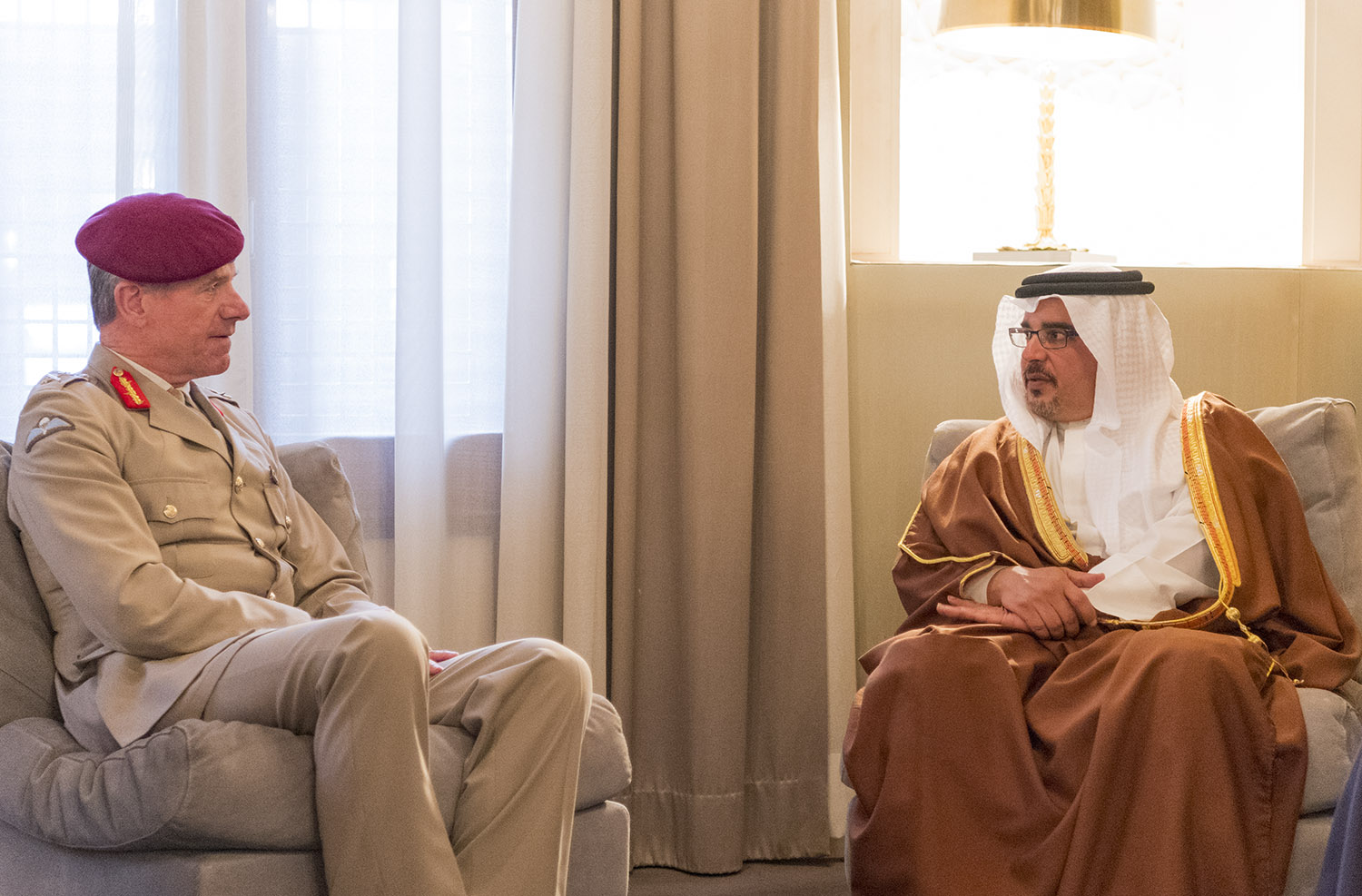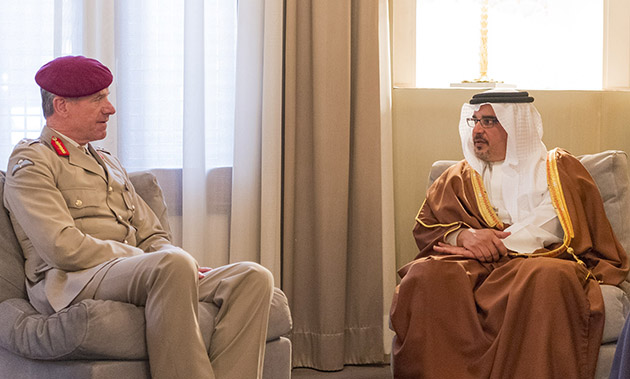 The Deputy King, His Royal Highness Prince Salman bin Hamad Al Khalifa, today met with the outgoing Defence Senior Advisor Middle East at the UK Ministry of Defence, Lieutenant-General Tom Beckett, at Riffa Palace.