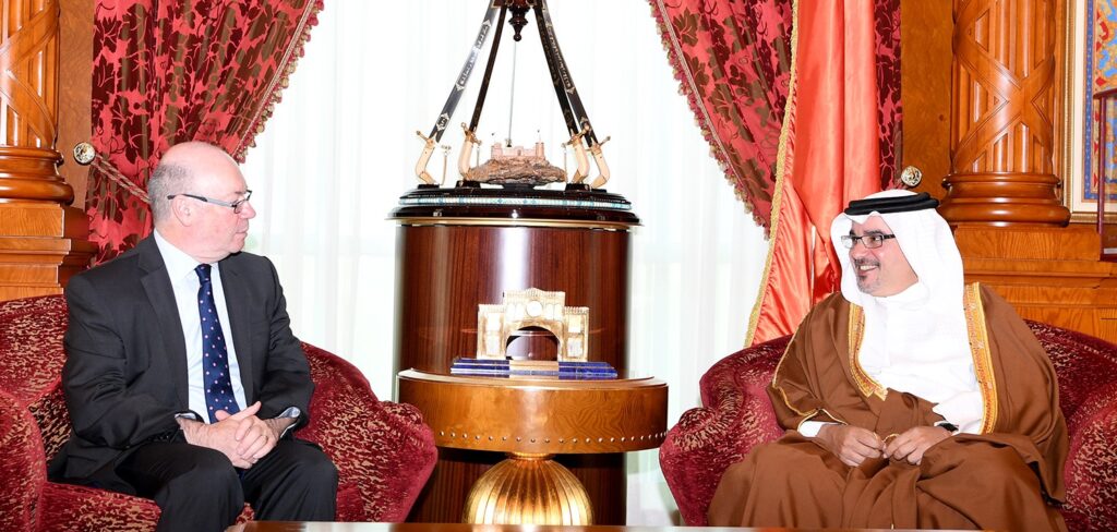His Royal Highness Prince Salman bin Hamad Al-Khalifa, Crown Prince, Deputy Supreme Commander and First Deputy Prime Minister, today met with UK Minister of State for the Middle East and North Africa, Alistair Burt MP at Gudaibiya Palace.