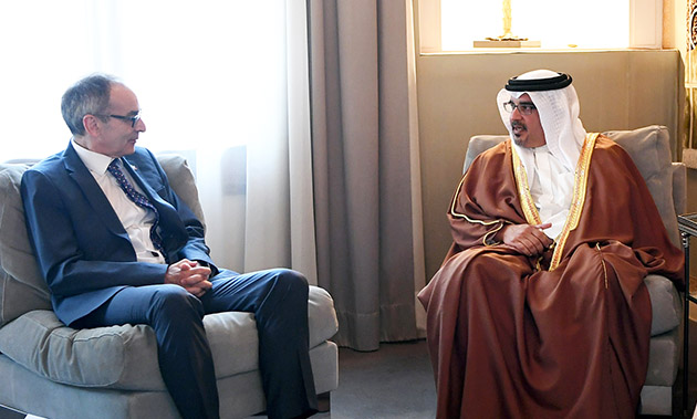 His Royal Highness Prince Salman bin Hamad Al Khalifa, Crown Prince, Deputy Supreme Commander and First Deputy Prime Minister today received the British Ambassador to the Kingdom of Bahrain, Simon Martin, at Riffa Palace.
