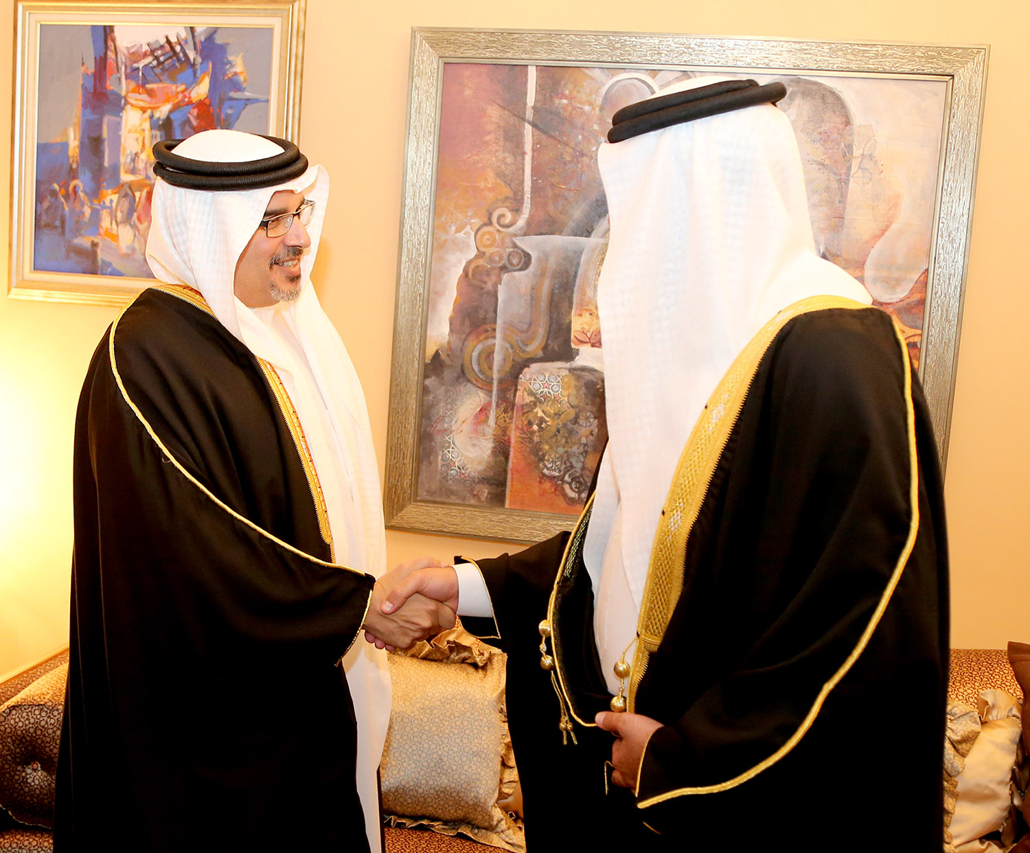 The Deputy King, His Royal Highness Prince Salman bin Hamad Al Khalifa, this evening visited the Majlis of the Chairman of the Shura Council, Ali Saleh Al-Saleh, the Majlis of Abdul Hussain Khalaf Al Asfoor, and the Majlis of Faisal Jawad. HH Shaikh Isa bin Salman Al Khalifa accompanied HRH during the visits.