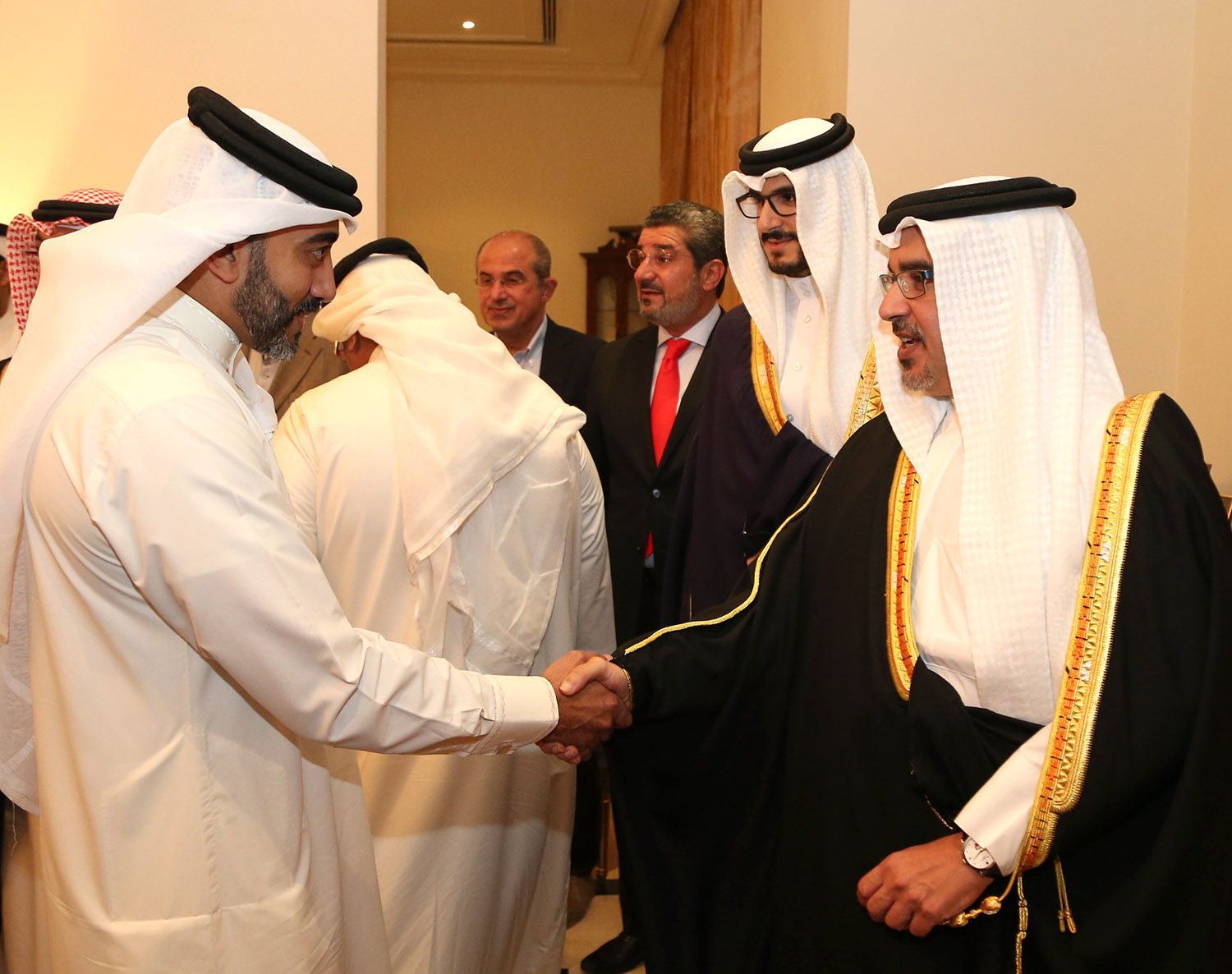 His Royal Highness Prince Salman bin Hamad Al Khalifa, Crown Prince, Deputy Supreme Commander and First Deputy Prime Minister, this evening visited the Majlis of the Bin Hindi family, the Majlis of Ali Rashid Al Amin, and the Majlis of Shaikh Adel Al Moawdeh. HH Shaikh Isa bin Salman Al Khalifa accompanied HRH during the Majlis visits.