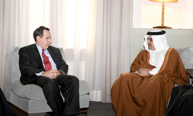 His Royal Highness Prince Salman bin Hamad Al Khalifa, the Crown Prince, Deputy Supreme Commander and First Deputy Prime Minister, today met Ambassador Stuart Jones, Acting US Assistant Secretary of State in the State Department’s Near East Affairs Bureau, at Riffa Palace.