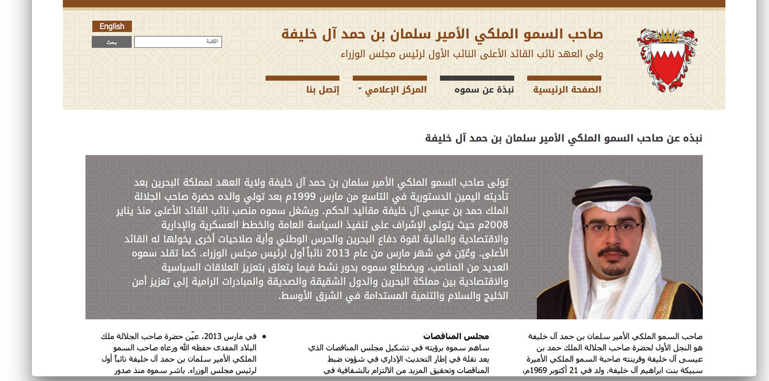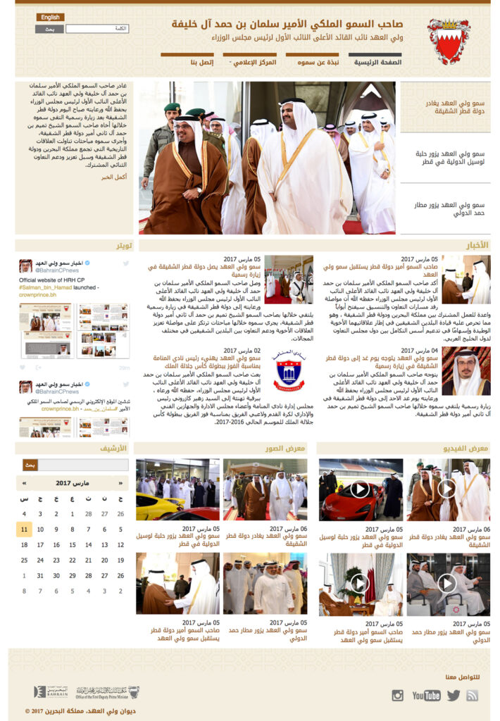 The Court of the Crown Prince and the Office of the First Deputy Prime Minister has launched the official website of His Royal Highness Prince Salman bin Hamad Al Khalifa, Crown Prince, Deputy Supreme Commander and First Deputy Prime Minister.