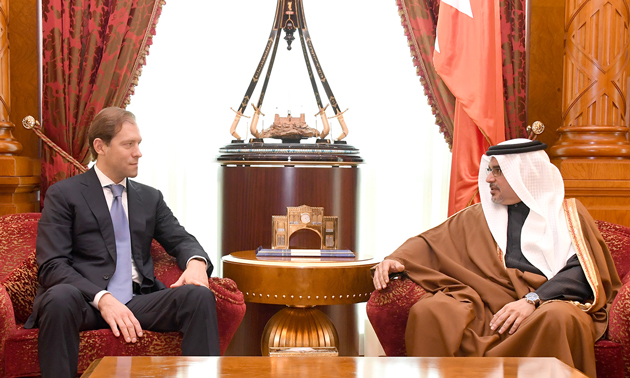 His Royal Highness Prince Salman bin Hamad Al Khalifa, Crown Prince, Deputy Supreme Commander and First Deputy Prime Minister today met with His Excellency Mr. Dennis Manturov, the Russian Federation’s Minister of Industry and Trade, at Gudaiybia Palace.