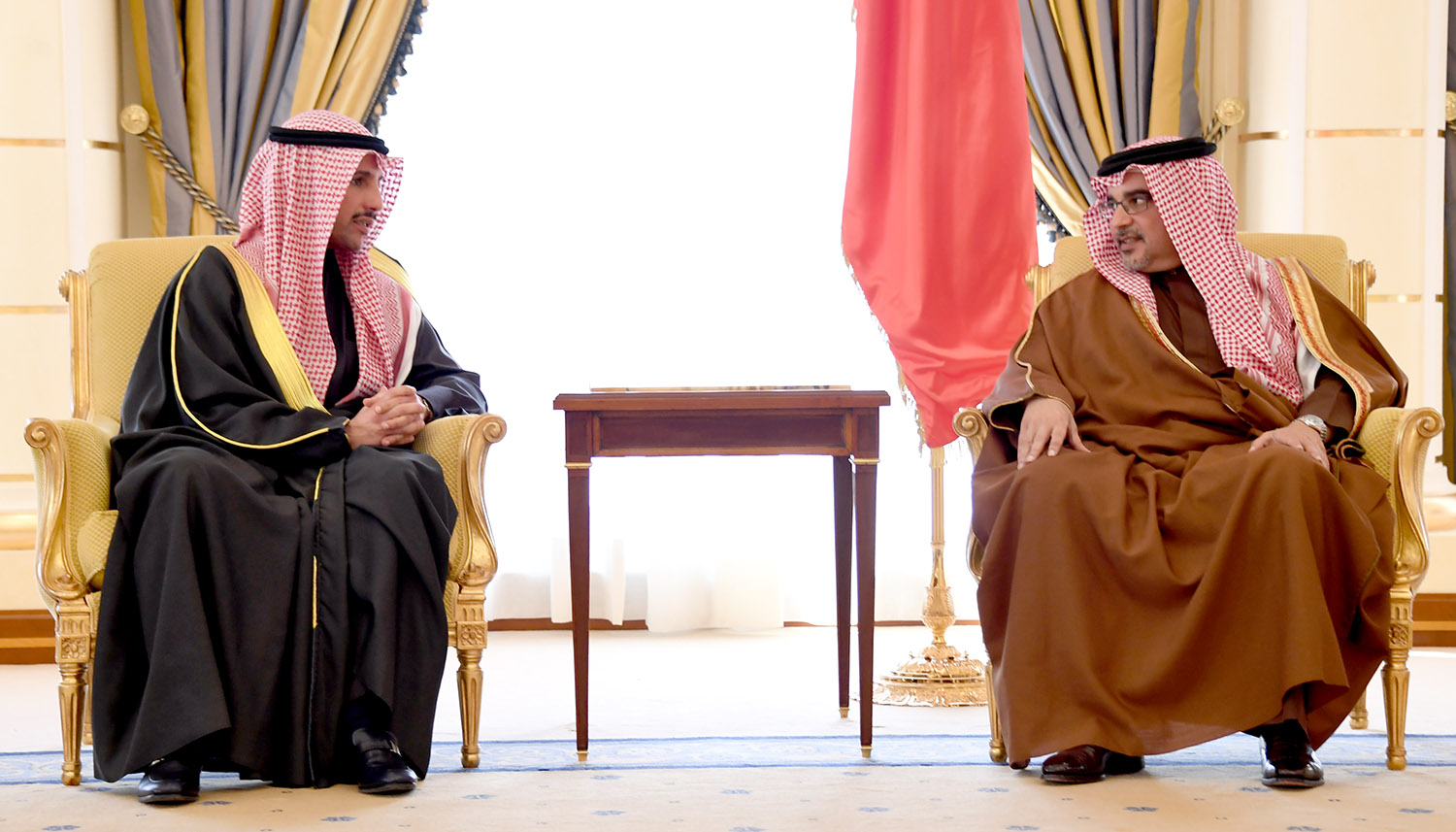 His Royal Highness Prince Salman bin Hamad Al Khalifa, the Crown Prince, Deputy Supreme Commander and First Deputy Prime Minister today received Kuwait’s National Assembly Speaker, His Excellency Marzouq Ali Al-Ghanim, and an accompanying parliamentary delegation, at Gudaibiya Palace.