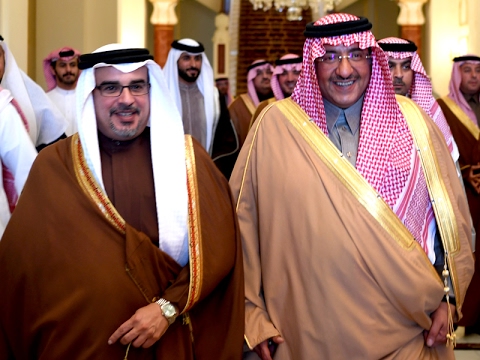 His Royal Highness Prince Salman Bin Hamad Al Khalifa, Crown Prince, Deputy Supreme Commander and First Deputy Prime Minister, today met His Royal Highness Prince Mohammad bin Naif bin Abdulaziz Al-Saud, Crown Prince, Deputy Prime Minister and Minister of Interior of the Kingdom of Saudi Arabia, at King Saud Palace.