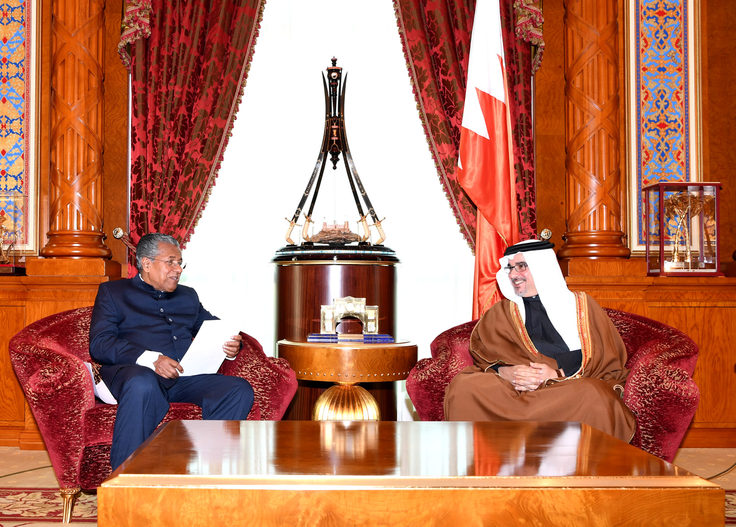 Deputy King His Royal Highness Prince Salman bin Hamad Al Khalifa, today met the Chief Minister of Kerala, His Excellency Pinarayi Vijayan, at Gudaibiya Palace.