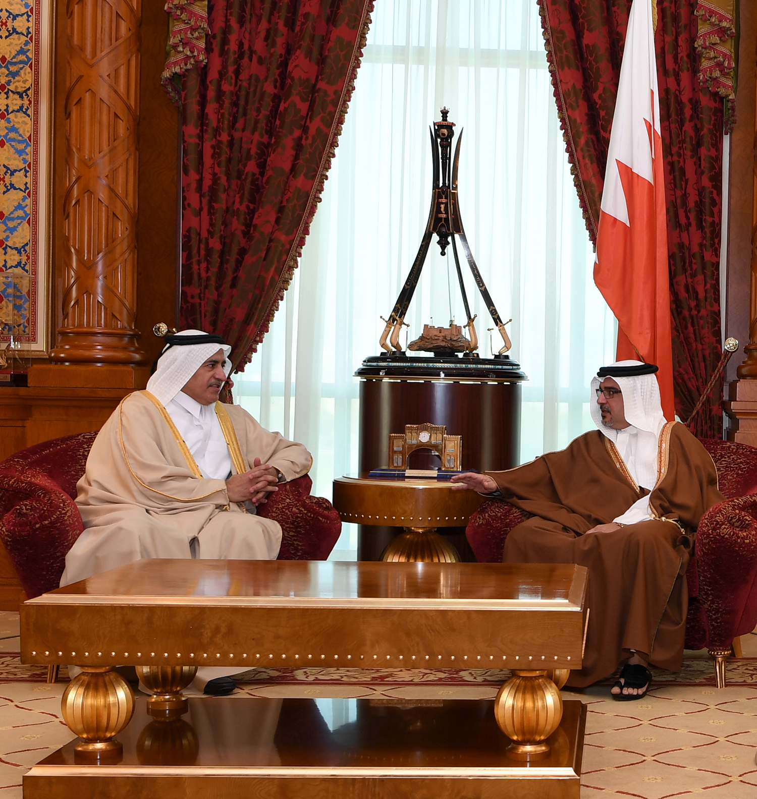 His Royal Highness Prince Salman bin Hamad Al Khalifa, Crown Prince, Deputy Supreme Commander and First Deputy Prime Minister today met the outgoing Ambassador of the State of Qatar, His Excellency Shaikh Jassim bin Mohammed bin Saud Al Thani, at Gudaibiya Palace.