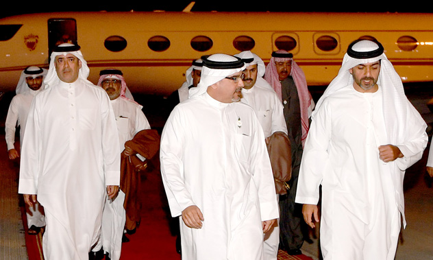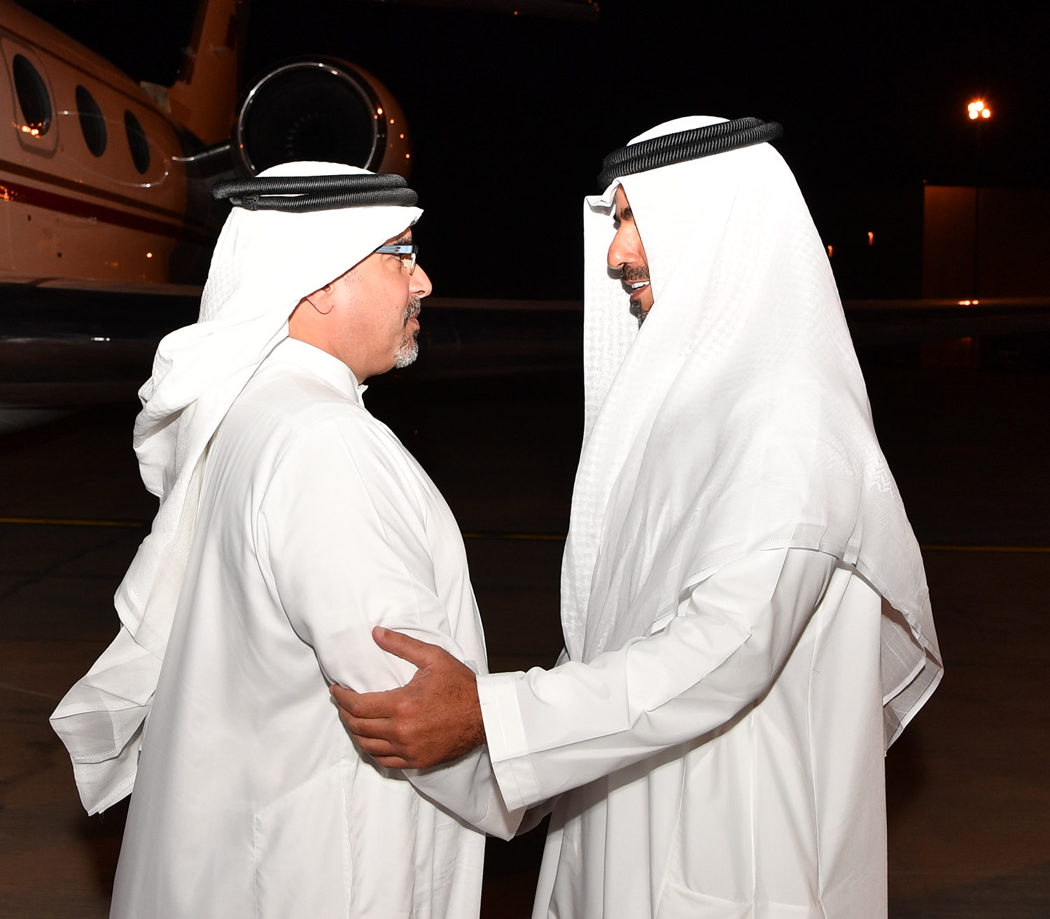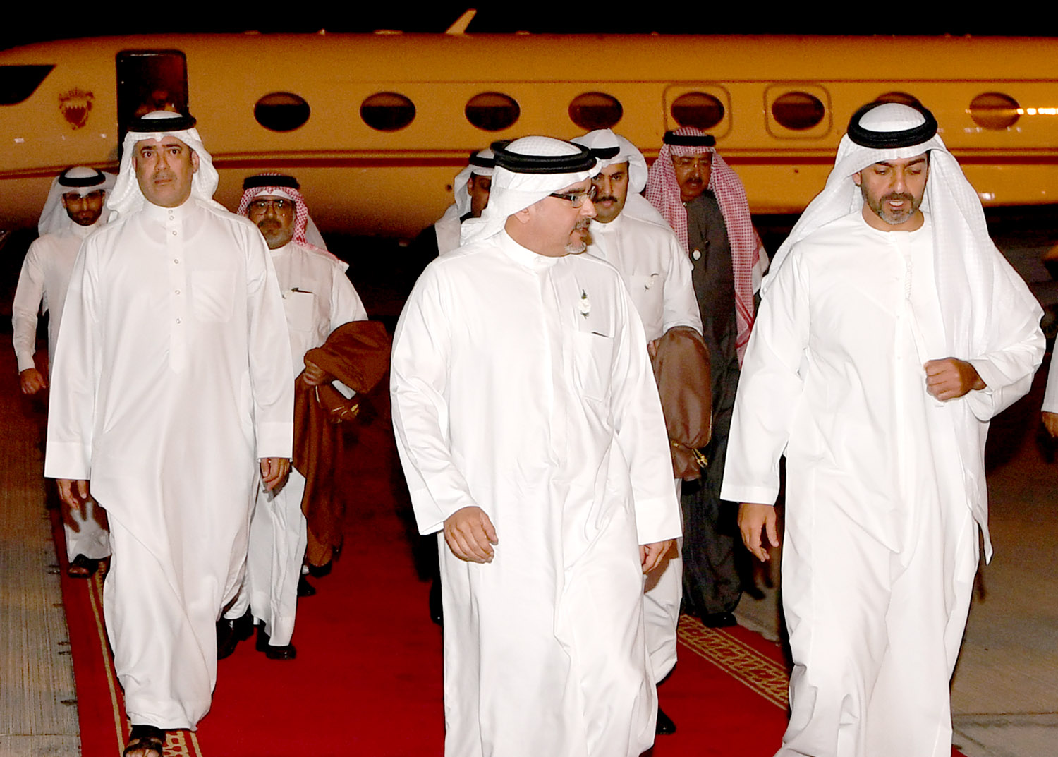 Upon arrival, His Royal Highness was received by the Chief of Abu Dhabi’s Crown Prince Court, His Highness Shaikh Hamed bin Zayed Al Nahyan and Bahrain’s Ambassador to the UAE, His Excellency Mohamed Hamad Al Maawdah.