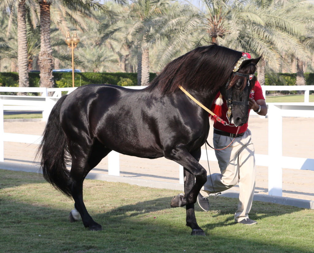 HM the King, HRH Prince Charles and HRH the Duchess of Cornwall attended a show of authentic Bahraini and Arabian horses known for distinctive characteristics and quality. HRH the Prince of Wales and his spouse were briefed on the characteristics of these horses, and the efforts being exerted to take care of them and preserve their breed.
