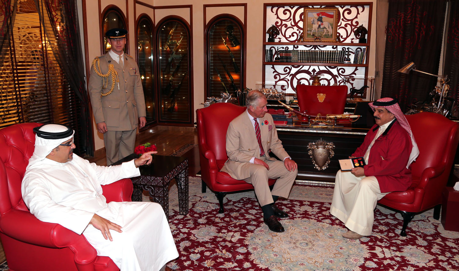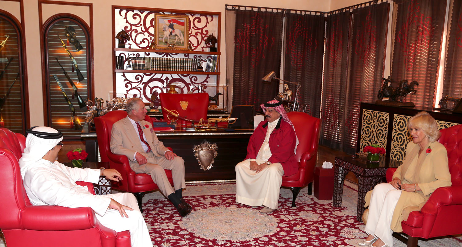 His Majesty King Hamad bin Isa Al Khalifa received, in the presence of His Royal Highness Prince Salman bin Hamad Al Khalifa, the Crown Prince, Deputy Supreme Commander and First Deputy Prime Minister, His Royal Highness Prince Charles, the Prince of Wales, and his spouse, Her Royal Highness the Duchess of Cornwall, at the Al-Safriya Palace today.