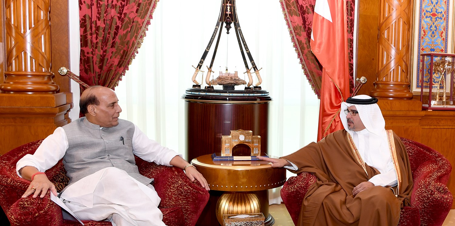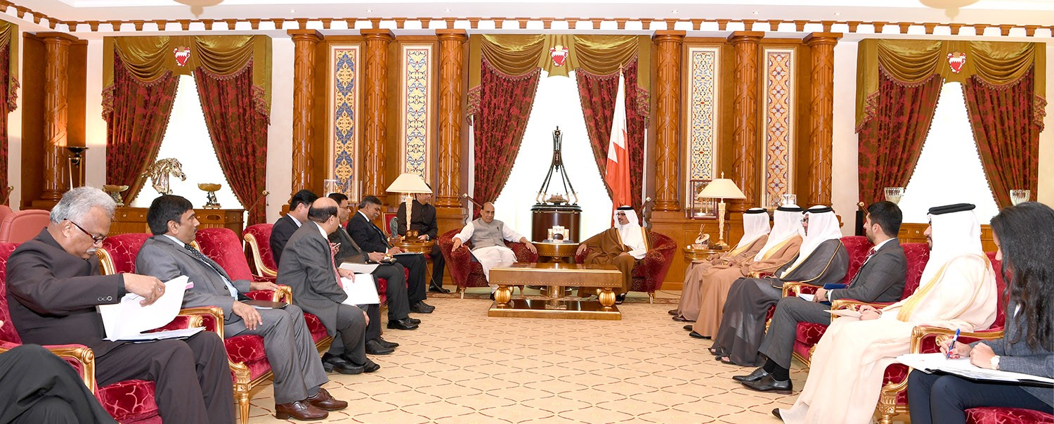 His Royal Highness Prince Salman bin Hamad Al Khalifa, Crown Prince, Deputy Supreme Commander and First Deputy Prime Minister, today met the Republic of India’s Union Minister for Home Affairs, His Excellency Shri Rajnath Singh, at Gudaibiya Palace.