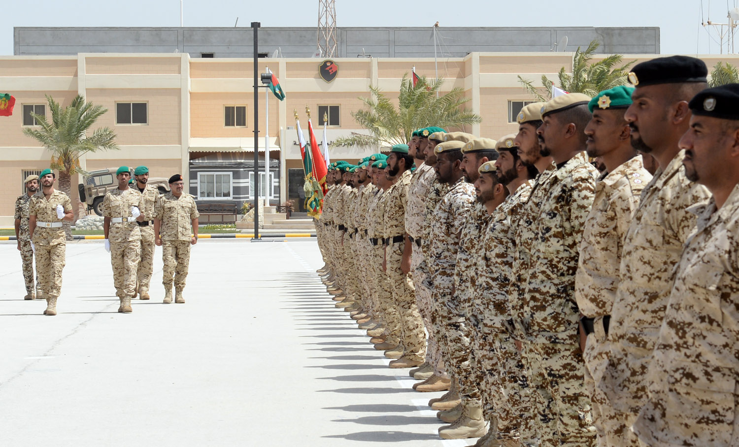 Following the National Anthem and inspection of the Guard of Honour, the Crown Prince listened to the recitation of verses from the Holy Quran. His Highness Brigadier Shaikh Nasser bin Hamad Al Khalifa then expressed his gratitude to His Royal Highness on his visit and honouring of the Task Force 5 (Aden), which has recently returned from Yemen.