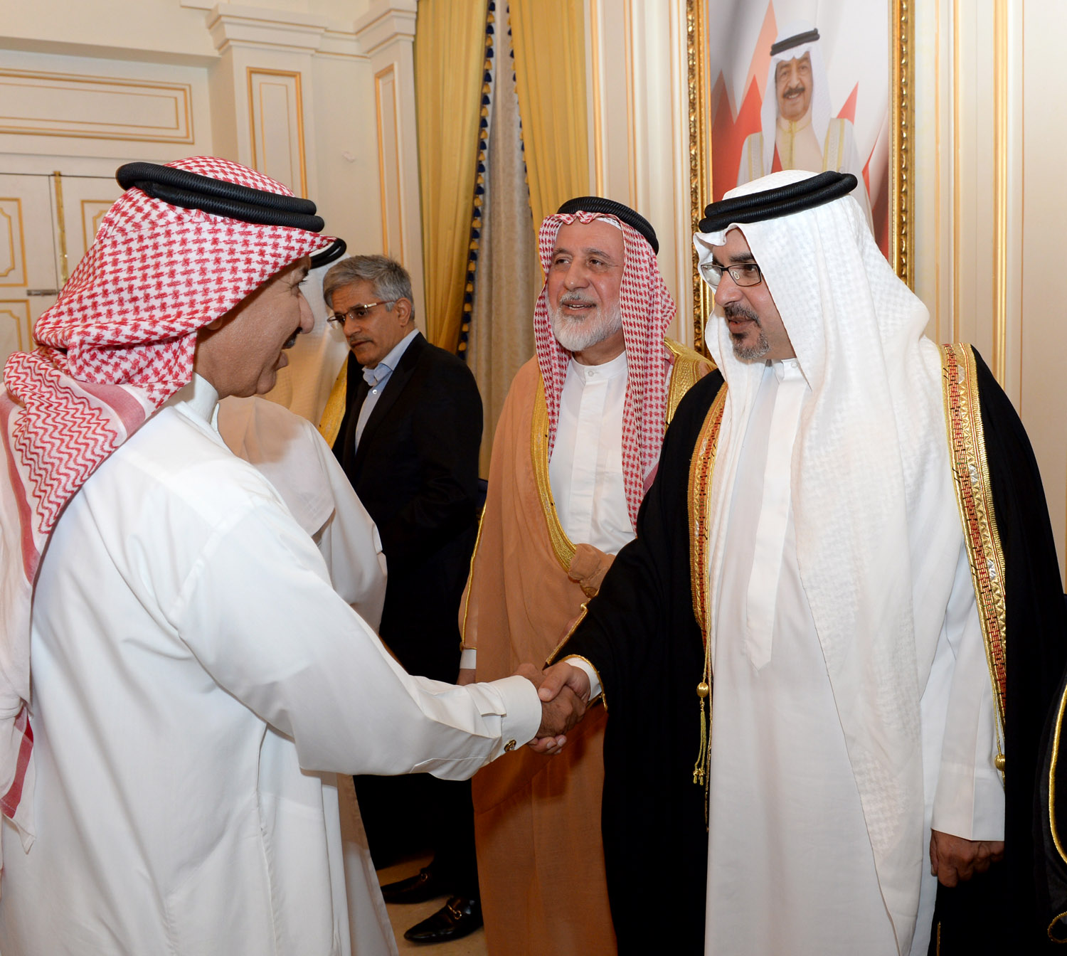 His Royal Highness Prince Salman bin Hamad Al Khalifa, Crown Prince, Deputy Supreme Commander and First Deputy Prime Minister, this evening visited the Majlis of the Kazerooni family and majlis of the Kooheji family.