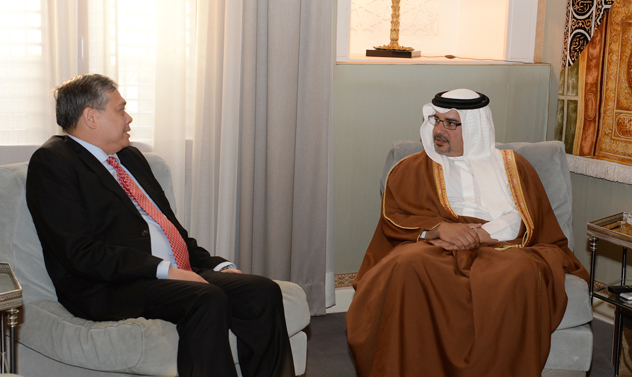 Deputy King, His Royal Highness Prince Salman bin Hamad Al Khalifa, this evening met His Excellency Alfonso Ferdinand A. Ver, the newly appointed Ambassador of the Republic of the Philippines to the Kingdom of Bahrain, at Riffa Palace.