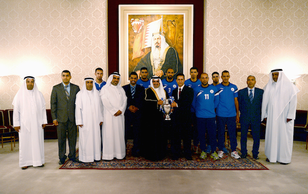 His Royal Highness Prince Salman bin Hamad Al Khalifa, Crown Prince, Deputy Supreme Commander and First Deputy Prime Minister, today received Chairman, Board of Directors and team members of Al-Nasr Volleyball Club at Riffa Palace.