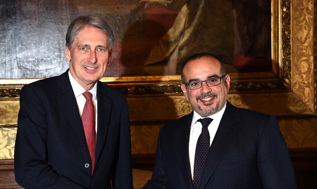 His Royal Highness Prince Salman bin Hamad Al Khalifa, Crown Prince, Deputy Supreme Commander and First Deputy Prime Minister, today met the UK Foreign Secretary, Philip Hammond MP, at the Foreign and Commonwealth Office in London.