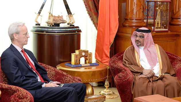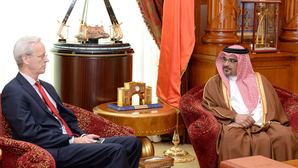 His Royal Highness Prince Salman bin Hamad Al Khalifa, the Crown Prince, Deputy Supreme Commander and First Deputy Prime Minister, today met the Ambassador of the United States to the Kingdom of Bahrain, William Roebuck, at Gudaibiya Palace.