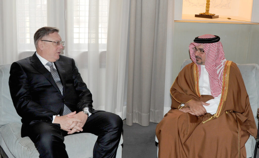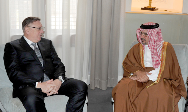 His Royal Highness Prince Salman bin Hamad Al Khalifa, Crown Prince, Deputy Supreme Commander and First Deputy Prime Minister, today received the Deputy Director General of the Russian defence export agency, Rosoboronexport, Mr. Sergey S. Goreslavsky, at Riffa Palace.