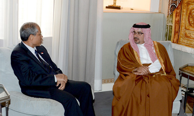 His Royal Highness Prince Salman bin Hamad Al Khalifa, Crown Prince, Deputy Supreme Commander and First Deputy Prime Minister, today met Masagos Zulkifli, Minister in the Prime Minister’s Office and Second Minister at the Ministries of Home and Foreign Affairs in Singapore, at Riffa Palace.
