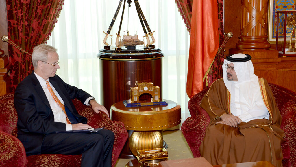 His Royal Highness Prince Salman bin Hamad Al Khalifa, the Crown Prince, Deputy Supreme Commander and First Deputy Prime Minister, today met the Ambassador of the United States to the Kingdom of Bahrain, His Excellency William Roebuck, at Gudaibiya Palace.
