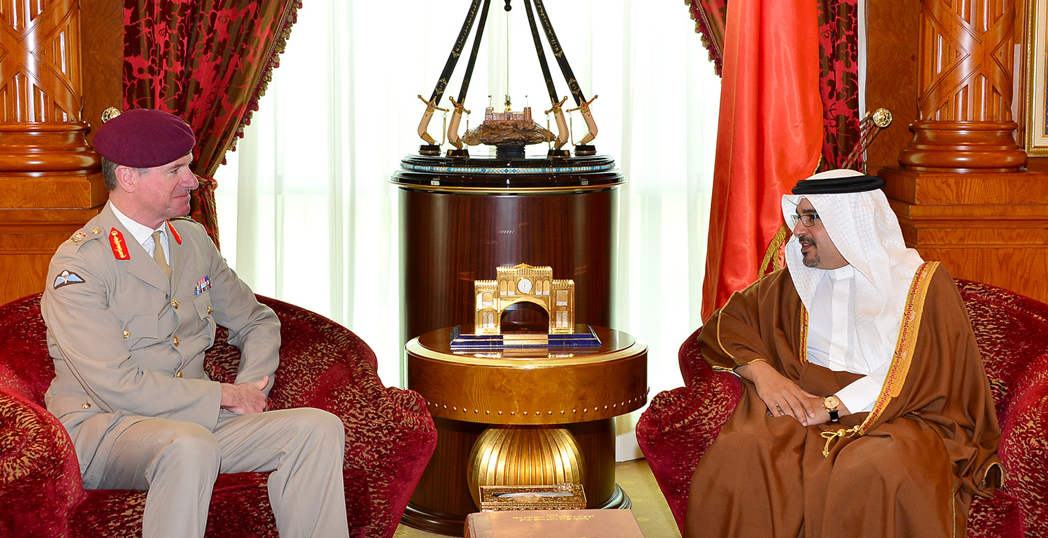 His Royal Highness Prince Salman bin Hamad Al Khalifa, Crown Prince, Deputy Supreme Commander and First Deputy Prime Minister, today met Lieutenant-General Thomas Beckett, the United Kingdom’s Defence Senior Adviser for the Middle East, and his accompanying delegation at Gudaiybia Palace.