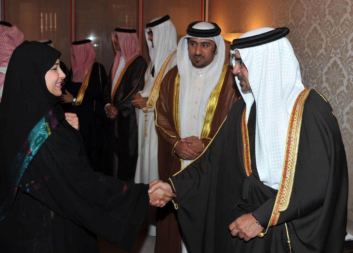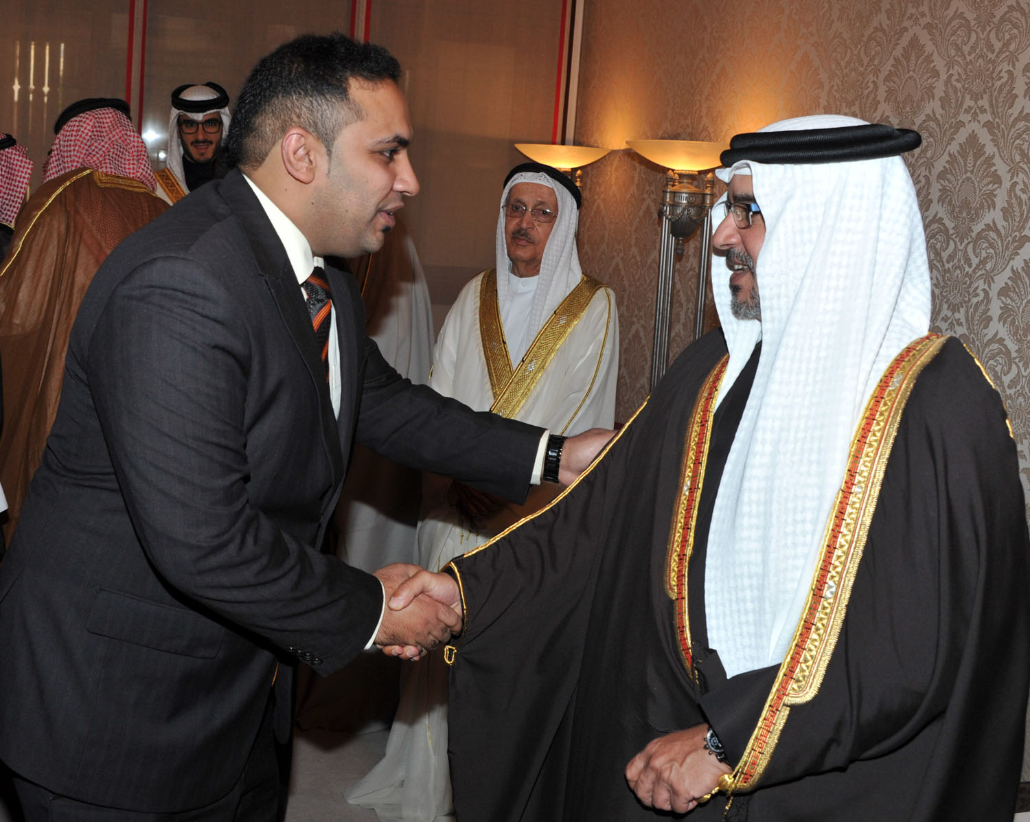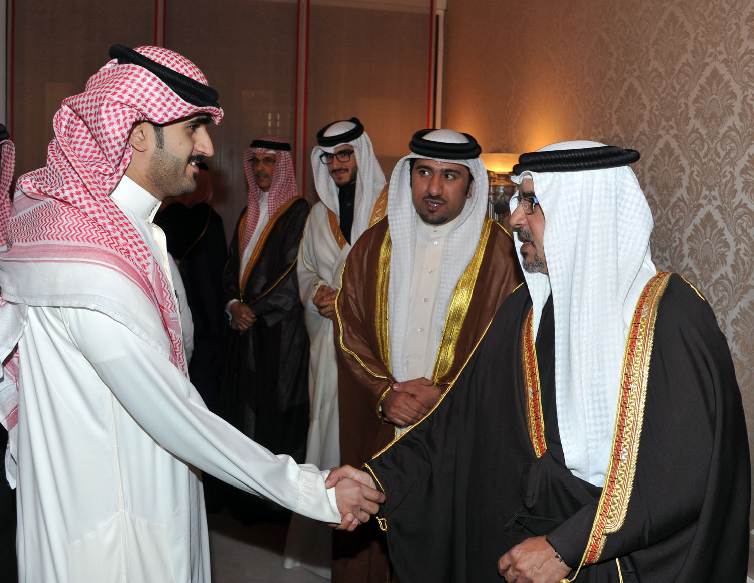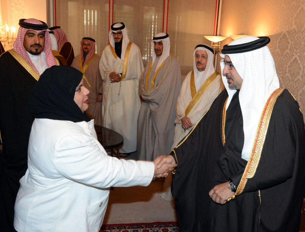 His Royal Highness welcomed a broad range of the Bahraini society, including members of the royal family, senior government officials, members of the Council of Representatives and the Shura Council, members of municipal councils, prominent religious figures, academics, community leaders, journalists and diplomats accredited to the Kingdom.