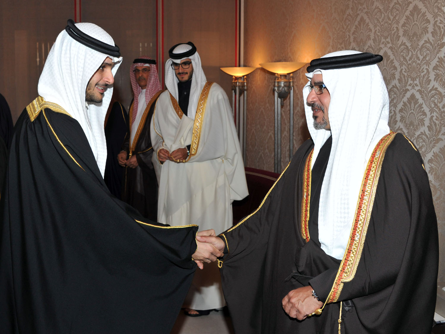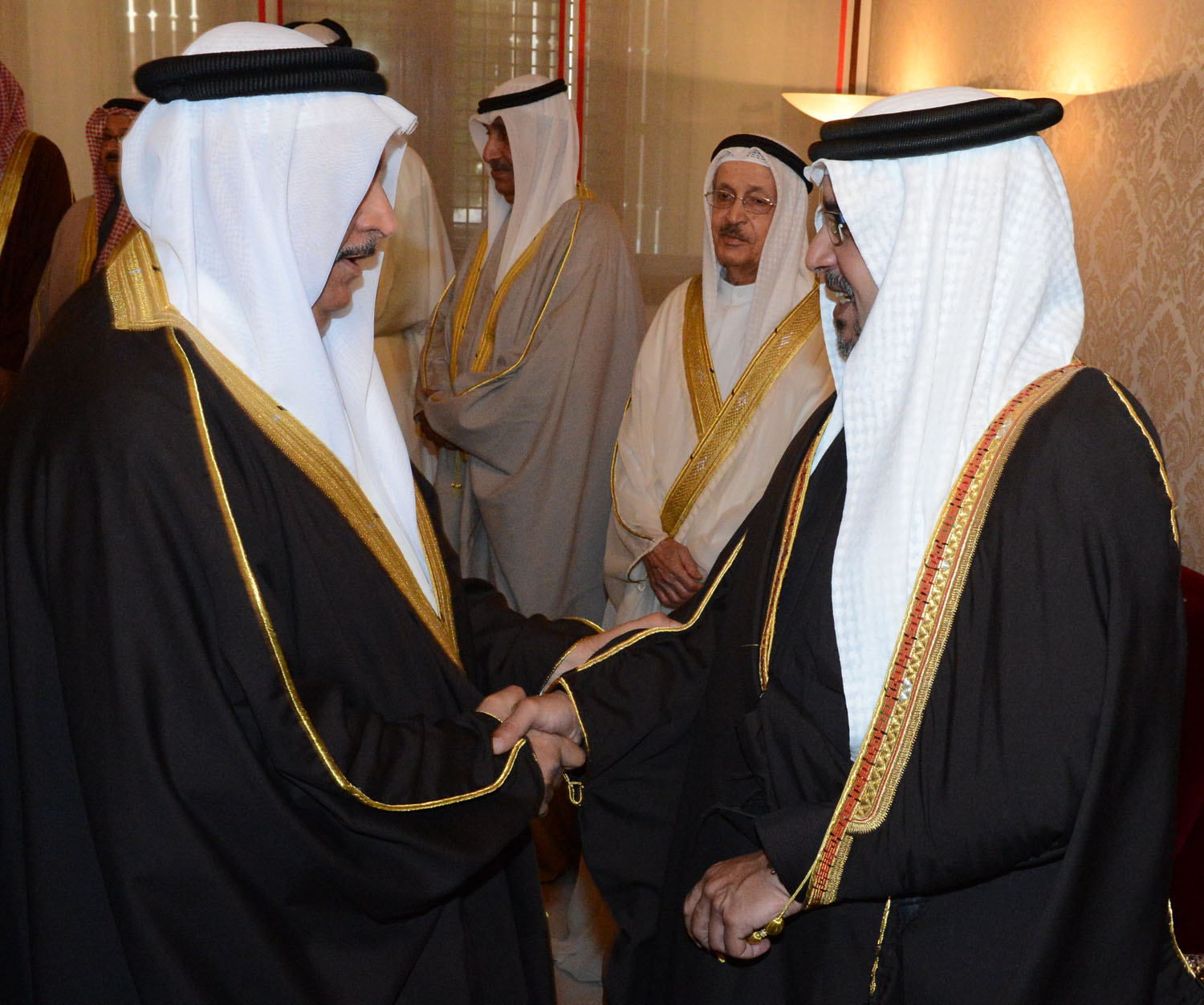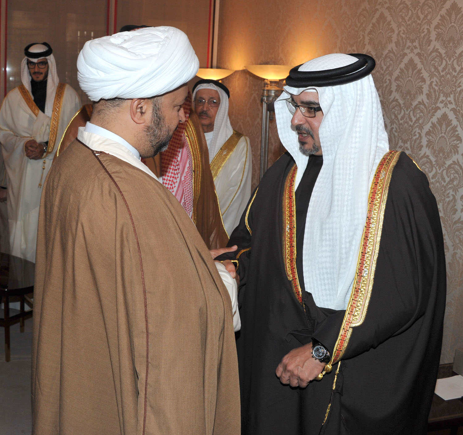 His Royal Highness welcomed a broad range of the Bahraini society, including members of the royal family, senior government officials, members of the Council of Representatives and the Shura Council, members of municipal councils, prominent religious figures, academics, community leaders, journalists and diplomats accredited to the Kingdom.