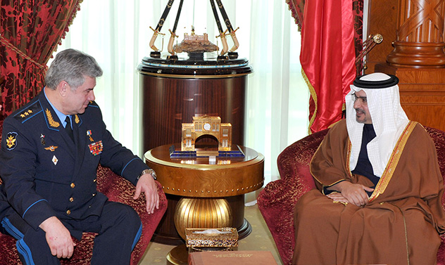 His Royal Highness Prince Salman bin Hamad Al-Khalifa, Crown Prince, Deputy Supreme Commander and First Deputy Prime Minister, today met Lieutenant General Viktor Bondarev, Commander-in-Chief of the Russian Air Force, at Gudaiybia Palace.