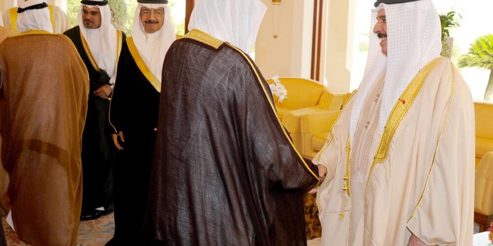 His Majesty King Hamad bin Isa Al-Khalifa received this evening at Al-Rawdha Palace – in the presence of His Royal Highness Prime Minister Prince Khalifa bin Salman Al-Khalifa and His Royal Highness Prince Salman bin Hamad Al-Khalifa, Crown Prince, Deputy Supreme Commander and First Deputy Premier – senior members of the Ruling Family who expressed their congratulations on the wedding of Shaikh Isa bin Salman bin Hamad Al-Khalifa, wishing him a happy married life. They also wished HM King Hamad utmost health and happiness.