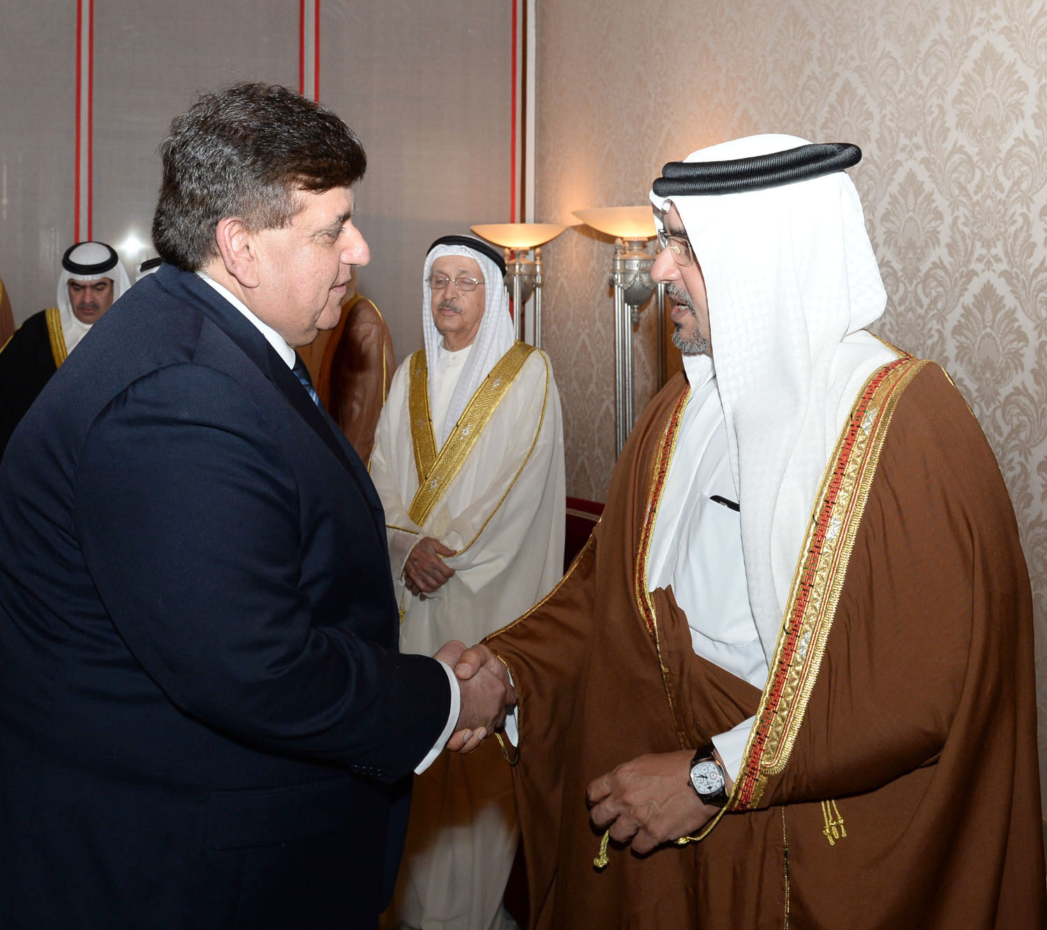 His Royal Highness welcomed a broad range of the Bahraini society, including members of the royal family, senior government officials, members of the Council of Representatives and the Shura Council, members of municipal councils, prominent religious figures, academics, community leaders, journalists and diplomats accredited to the Kingdom.