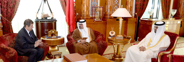 <p>His Royal Highness Prince Salman bin Hamad Al-Khalifa, Crown Prince, Deputy Supreme Commander and First Deputy Prime Minister, today met with the Ambassador of the Russian Federation to the Kingdom of Bahrain, His Excellency Victor Smirnov, at Gudaibiya Palace.</p>