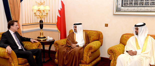 His Royal Highness Prince Salman bin Hamad Al-Khalifa, Crown Prince, Deputy Supreme Commander and First Deputy Prime Minister today met with the British Ambassador to the Kingdom of Bahrain, Iain Lindsay, at Gudaibiya Palace.