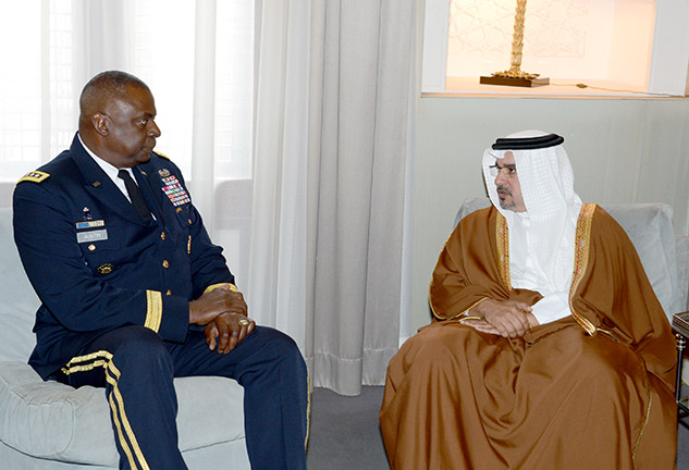 During the meeting, His Royal Highness and General Austin III reviewed the longstanding strategic relations between the Kingdom of Bahrain and the United States.