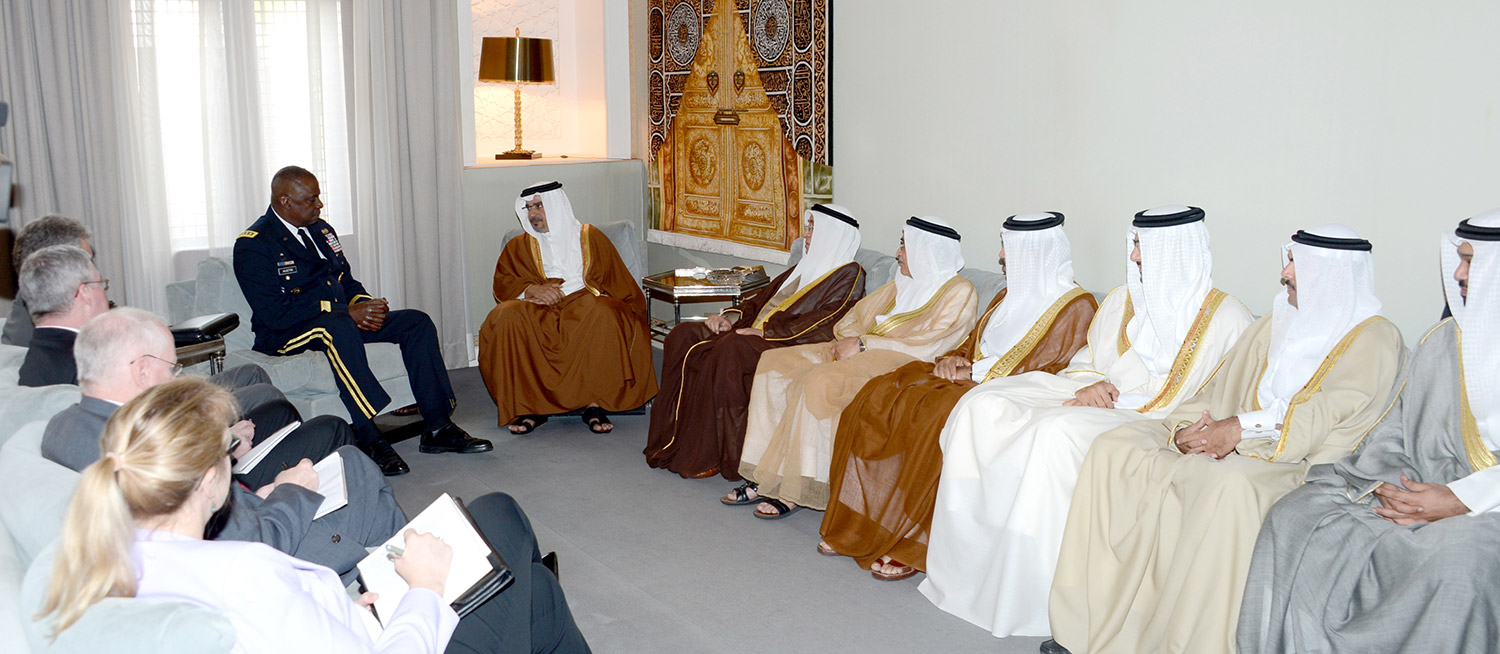 His Royal Highness Prince Salman bin Hamad Al-Khalifa, Crown Prince, Deputy Supreme Commander and First Deputy Prime Minister today received the Commander of United States Central Command (CENTCOM), General Lloyd James Austin III at Riffa Palace.