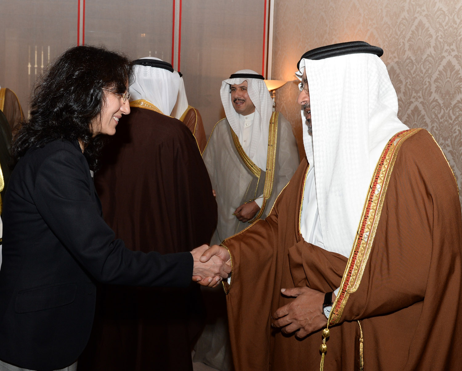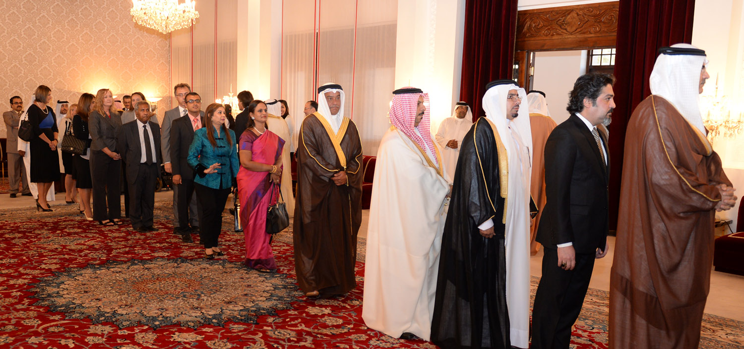His Royal Highness welcomed a broad range of the Bahraini society, including members of the royal family, senior government officials, members of the Council of Representatives and the Shura Council, members of municipal councils, prominent religious figures, academics, community leaders, journalists and diplomats accredited to the Kingdom.