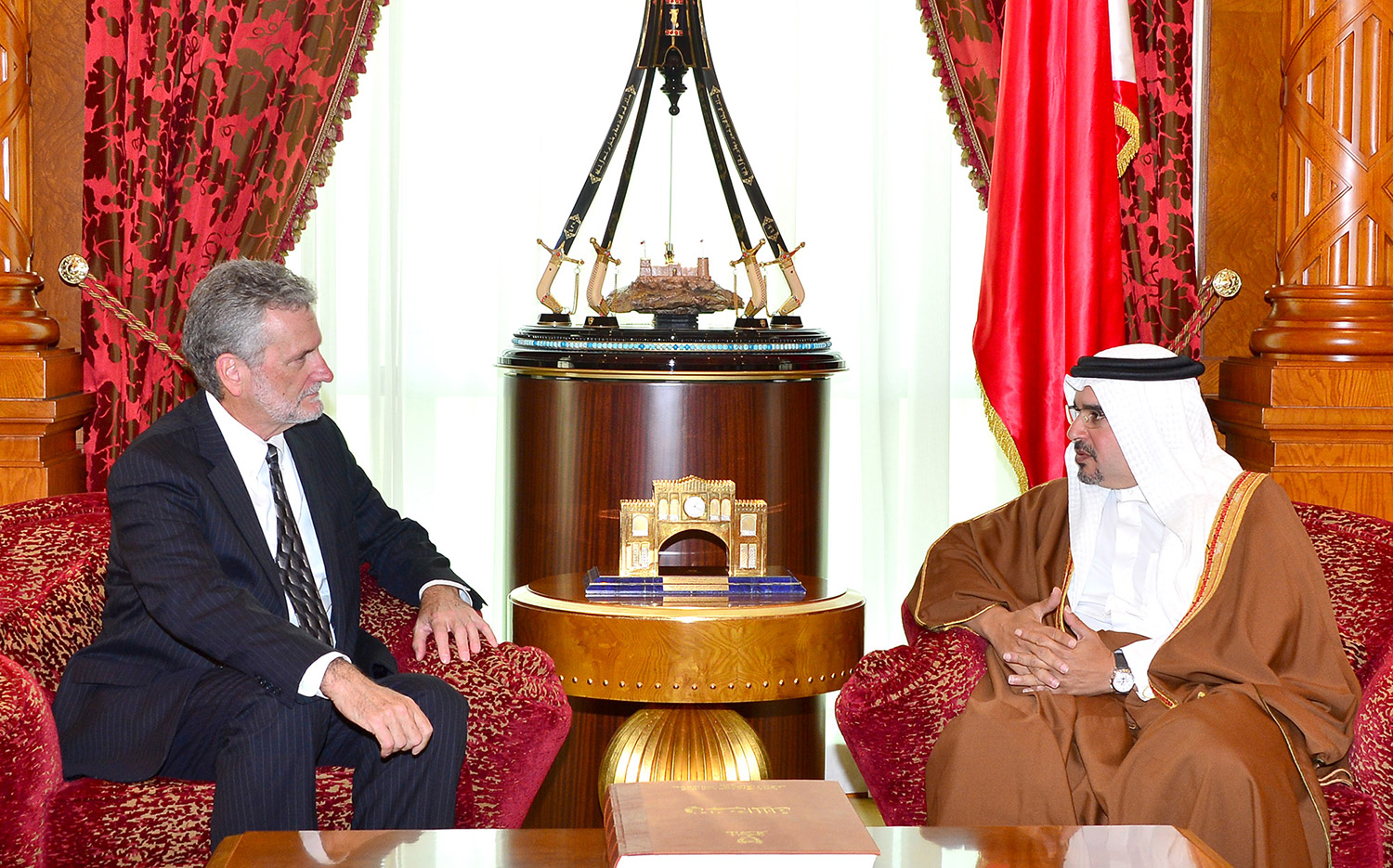 His Royal Highness Prince Salman bin Hamad Al-Khalifa, Crown Prince, Deputy Supreme Commander and First Deputy Prime Minister today met with the American Ambassador to the Kingdom of Bahrain, His Excellency Mr. Thomas Krajeski, at Gudaibiya Palace.