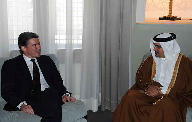 His Royal Highness Prince Salman bin Hamad Al-Khalifa, Crown Prince, Deputy Supreme Commander and First Deputy Prime Minister today met with the UK Minister of State for the Middle East and North Africa, Hugh Robertson MP, at Riffa Palace.