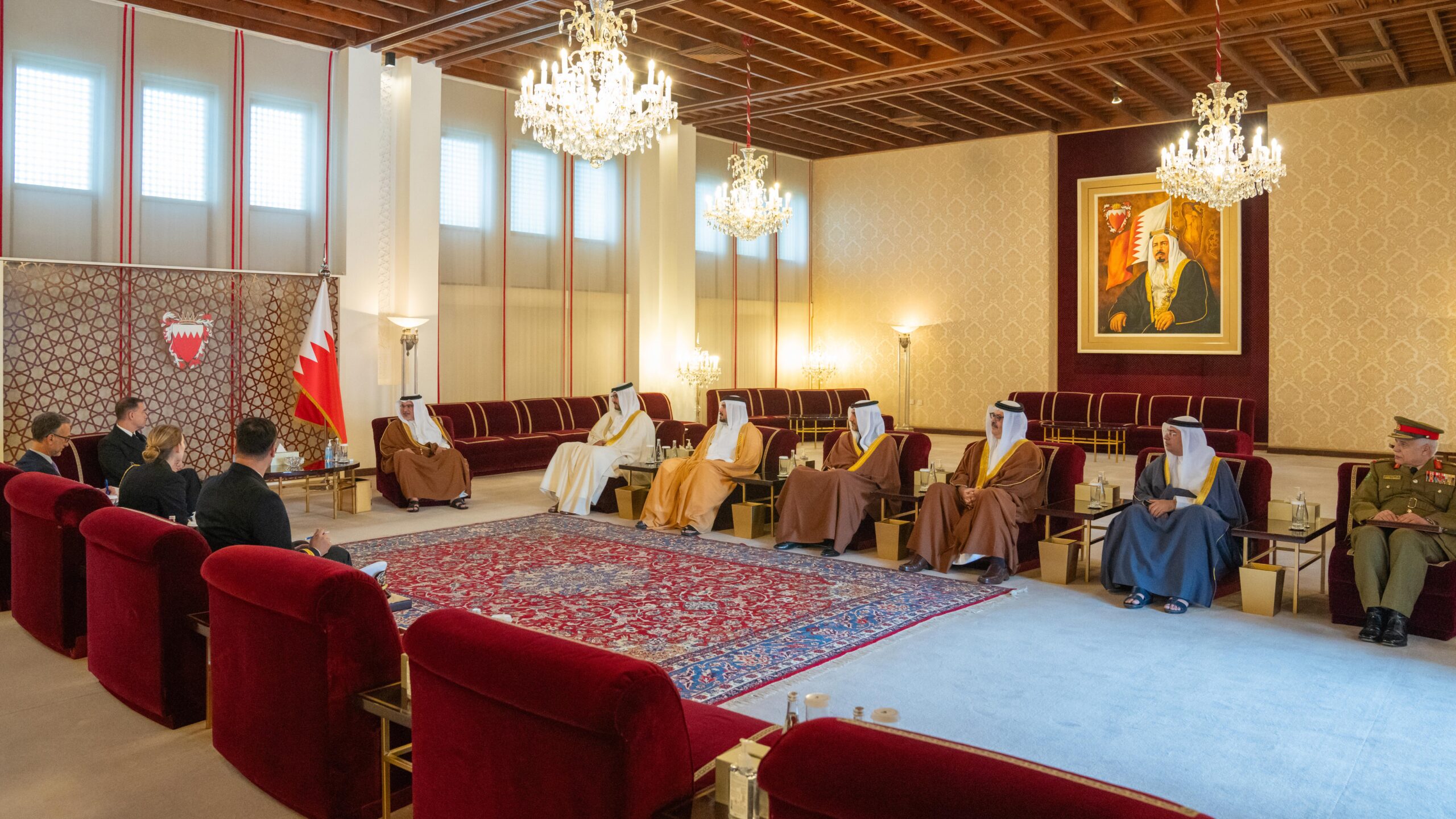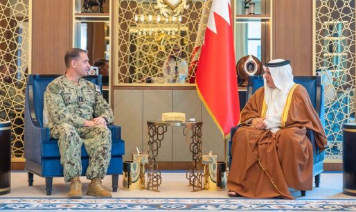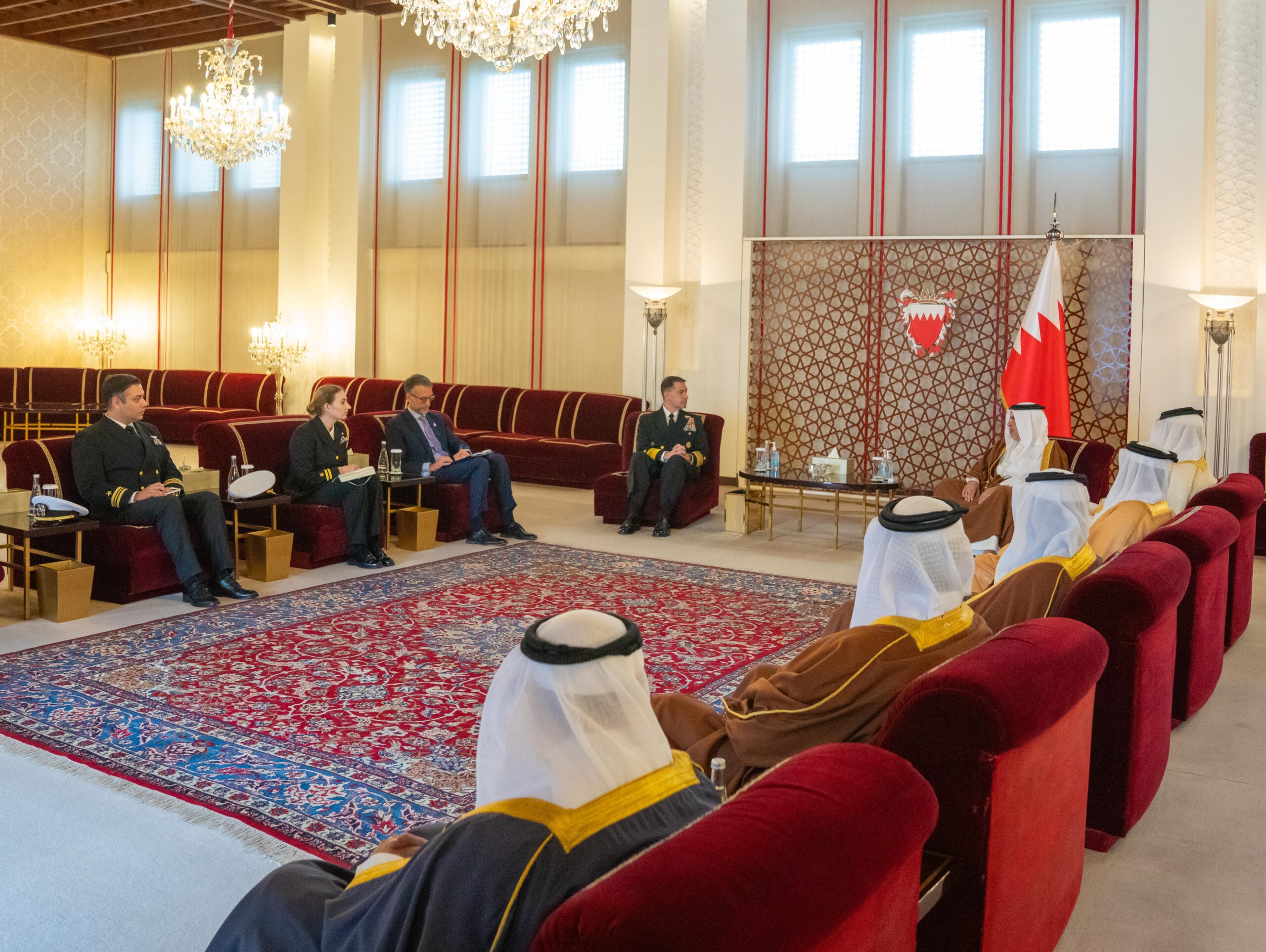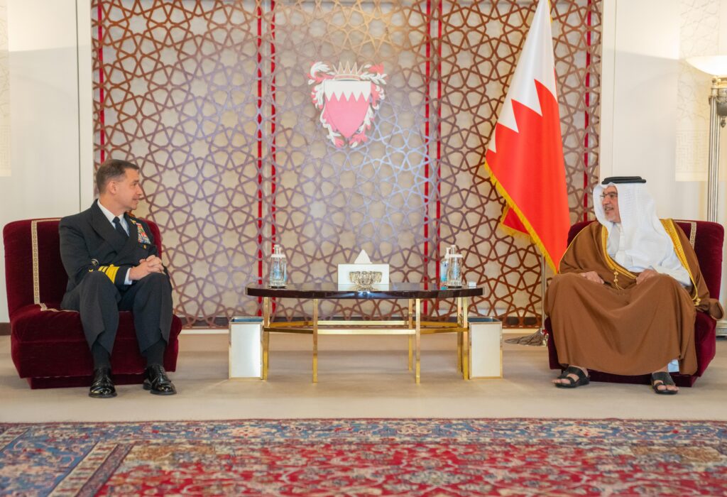 His Royal Highness Prince Salman bin Hamad Al Khalifa, the Crown Prince, Deputy Supreme Commander of the Armed Forces and Prime Minister, today received the Commander of US Naval Forces Central Command, Commander of the United States Fifth Fleet, and Commander of Combined Maritime Forces, Vice Admiral Charles B. Cooper II, at Riffa Palace, to mark the end of his tenure.