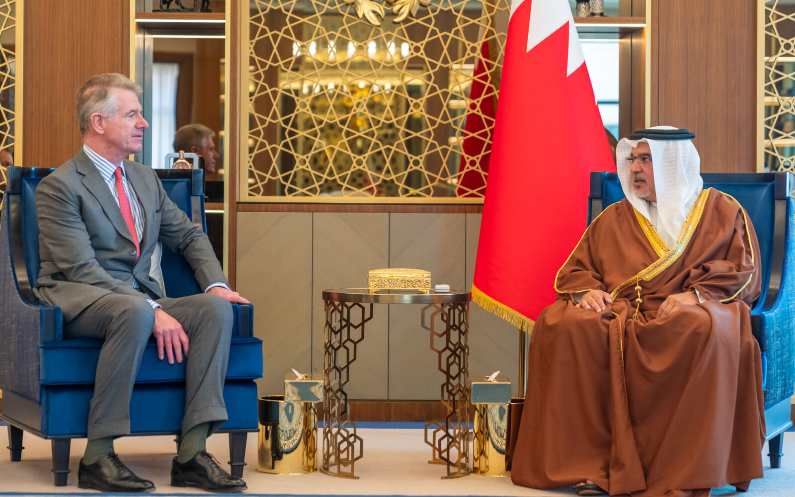 His Royal Highness Prince Salman bin Hamad Al Khalifa, the Crown Prince and Prime Minister, today received the outgoing Executive Director of IISS–Middle East, Lieutenant General (Retd) Sir Thomas Beckett, at Gudaibiya Palace.
