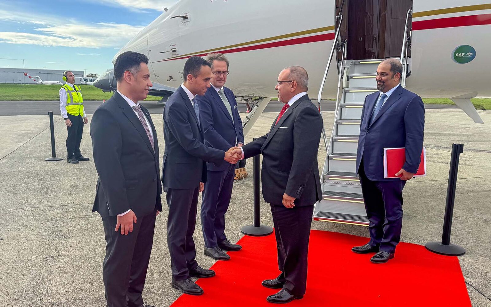 Upon arrival, His Royal Highness was received by the EU Special Representative for the Gulf region, Luigi Di Maio and the Head of the Delegation of GCC to the European Union, Fahad Sagar Al-Jaimaz.