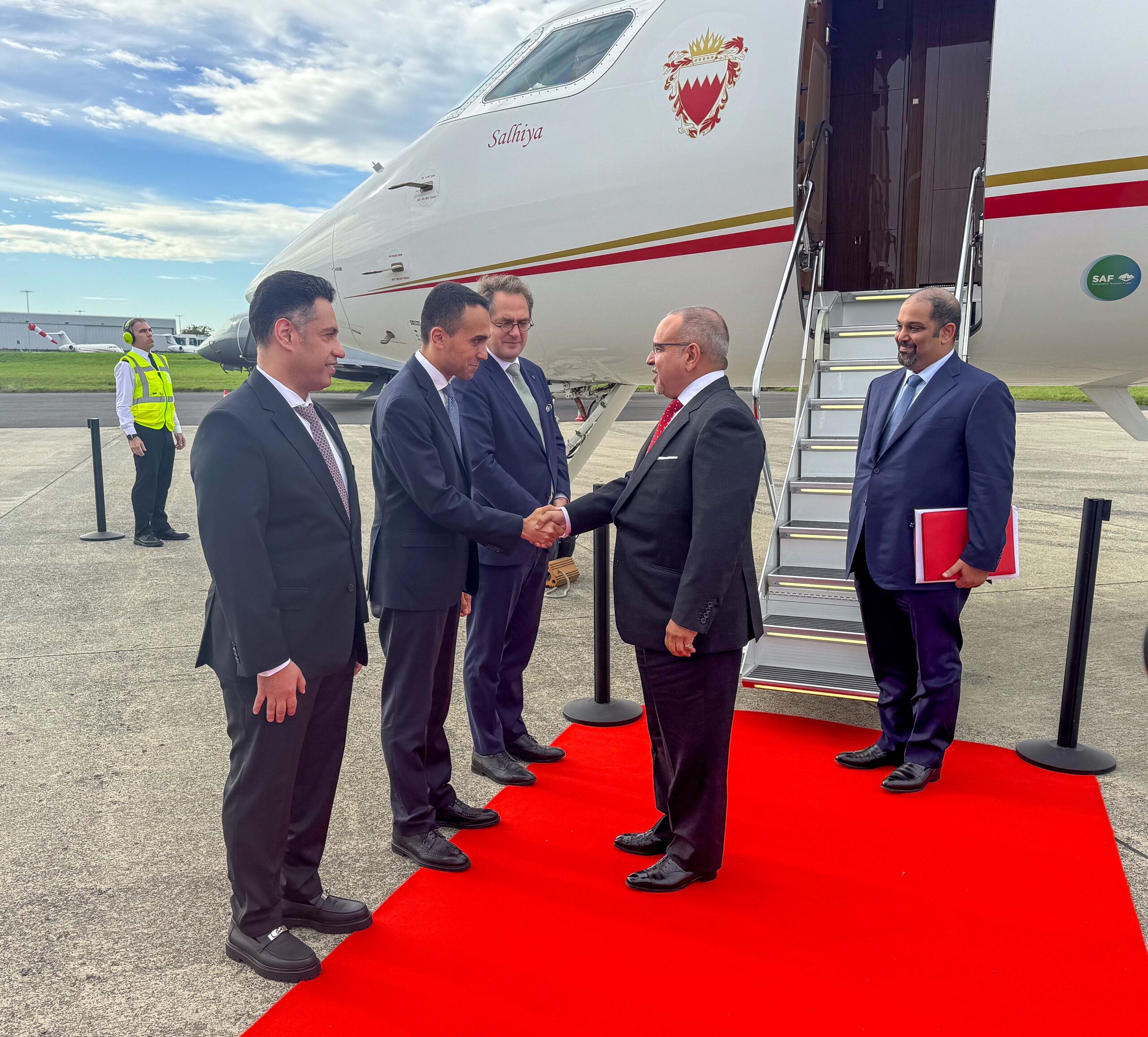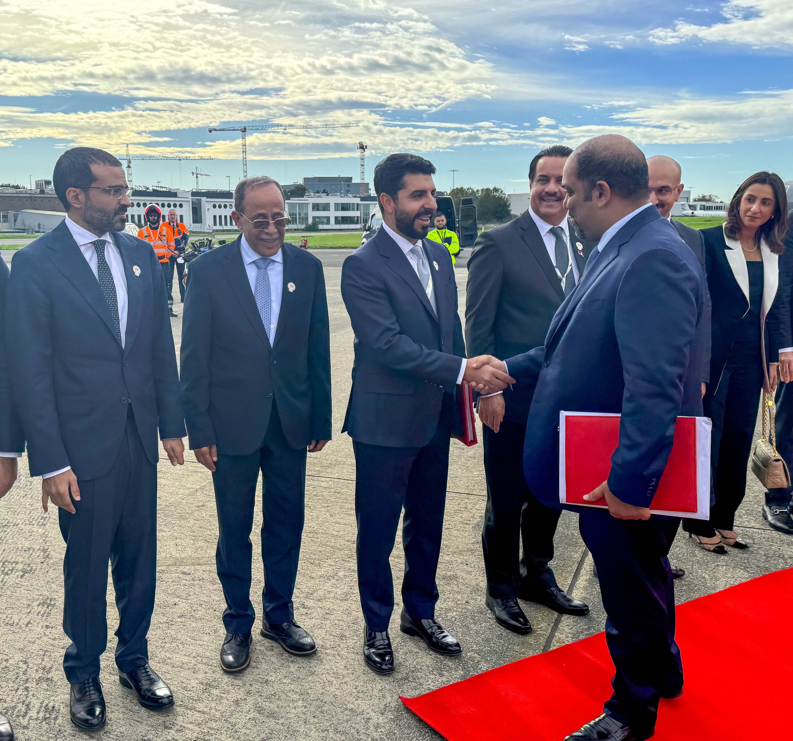 HRH the Crown Prince and Prime Minister was accompanied by an official delegation, including the Minister of Foreign Affairs, HE Dr Abdullatif bin Rashid Al Zayani, the Minister of Finance and National Economy, HE Shaikh Salman bin Khalifa Al Khalifa, the Minister of Legal Affairs, HE Yousif bin Abdulhussain Khalaf, the Minister of Sustainable Development, HE Noor bint Ali Al-Khulaif, the Minister of Industry and Commerce, HE Abdulla bin Adel Fakhro, the Ambassador of the Kingdom of Bahrain to Belgium and Head of its Mission to the European Union (EU), Abdullah Faisal Jabr Al Dosari, and several other senior officials.