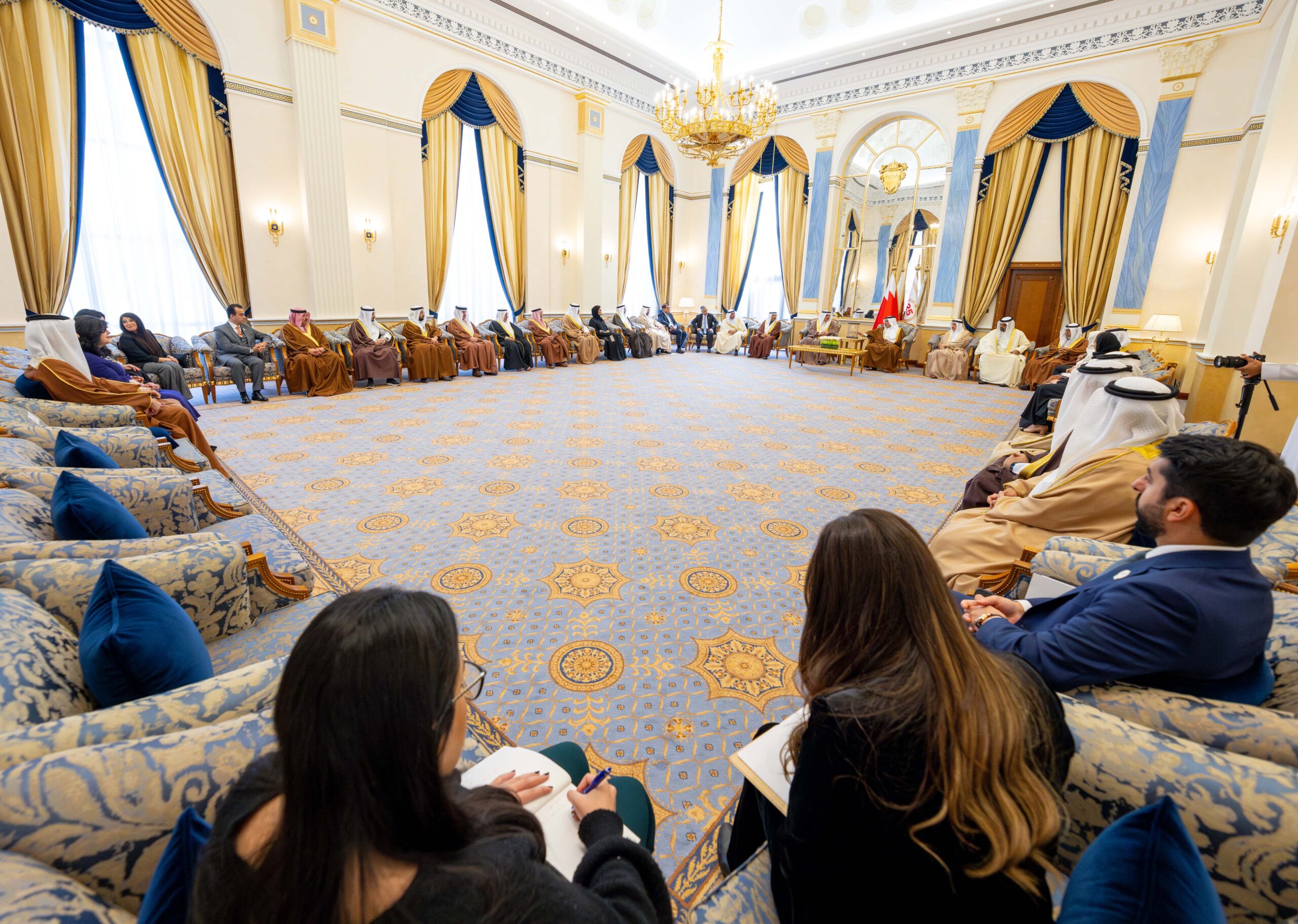 His Royal Highness Prince Salman bin Hamad Al Khalifa, the Crown Prince and Prime Minister, met today at Gudaibiya Palace with the Speaker of the Council of Representatives, HE Ahmed bin Salman Al-Musallam, and the Chairman of the Shura Council, HE Ali bin Saleh Al Saleh. The meeting also included the Chairman and members of the Committee on Foreign Affairs, Defense, and National Security from both Councils, as well as other members of the Council of Representatives and the Shura Council.