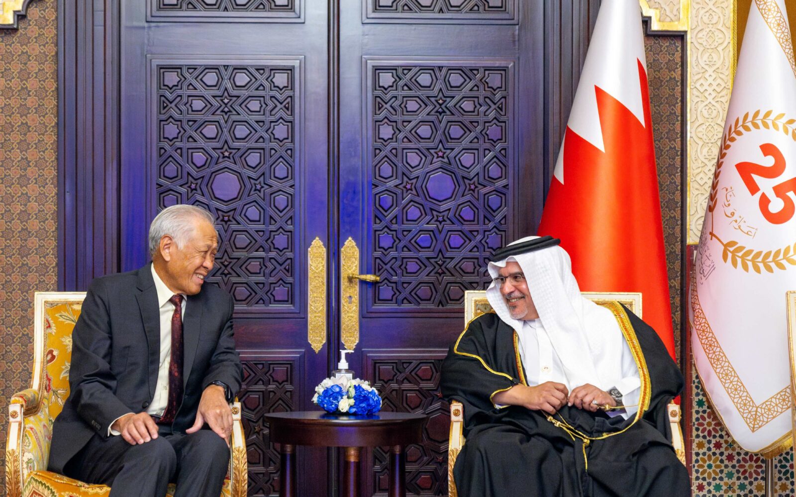 His Royal Highness Prince Salman bin Hamad Al Khalifa, the Crown Prince, Deputy Supreme Commander of the Armed Forces and Prime Minister, today met with the Minister for Defence of the Republic of Singapore, His Excellency Dr NG Eng Hen, on the sidelines of the 20th edition of the IISS Manama Dialogue.