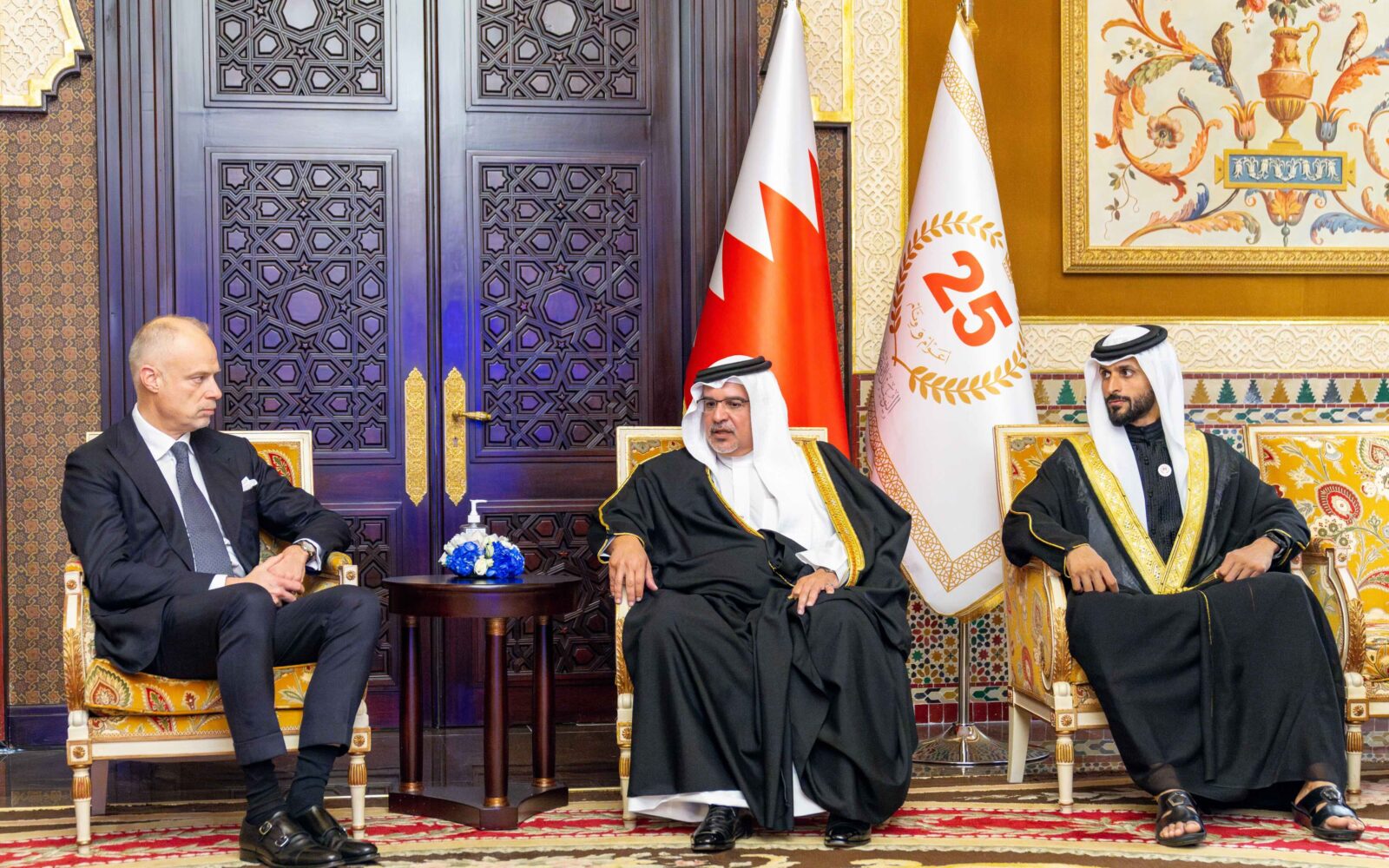 The National Security Advisor, Secretary-General of the Supreme Defence Council, and Commander of the Royal Guard, HH Lieutenant-General Shaikh Nasser bin Hamad Al Khalifa, the Minister of Finance and National Economy, HE Shaikh Salman bin Khalifa Al Khalifa, the Minister of Defence Affairs, HE Lieutenant General Abdullah bin Hassan Al Nuaimi, and the Bahrain Defence Force Chief of Staff, Lieutenant-General Theyab bin Saqr Al-Nuaimi, also attended the meeting.