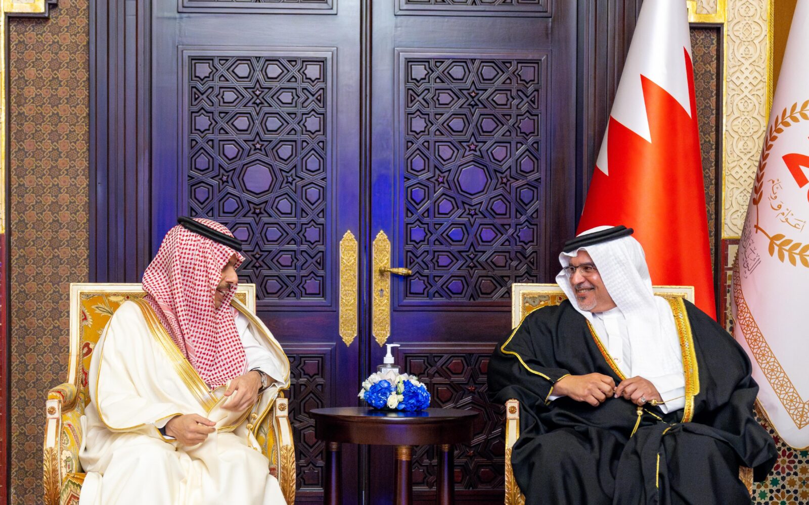 His Royal Highness Prince Salman bin Hamad Al Khalifa, the Crown Prince, Deputy Supreme Commander of the Armed Forces, and Prime Minister, today met with the Minister of Foreign Affairs of the Kingdom of Saudi Arabia, His Highness Prince Faisal bin Farhan Al Saud, on the sidelines of the 20th edition of the IISS Manama Dialogue.