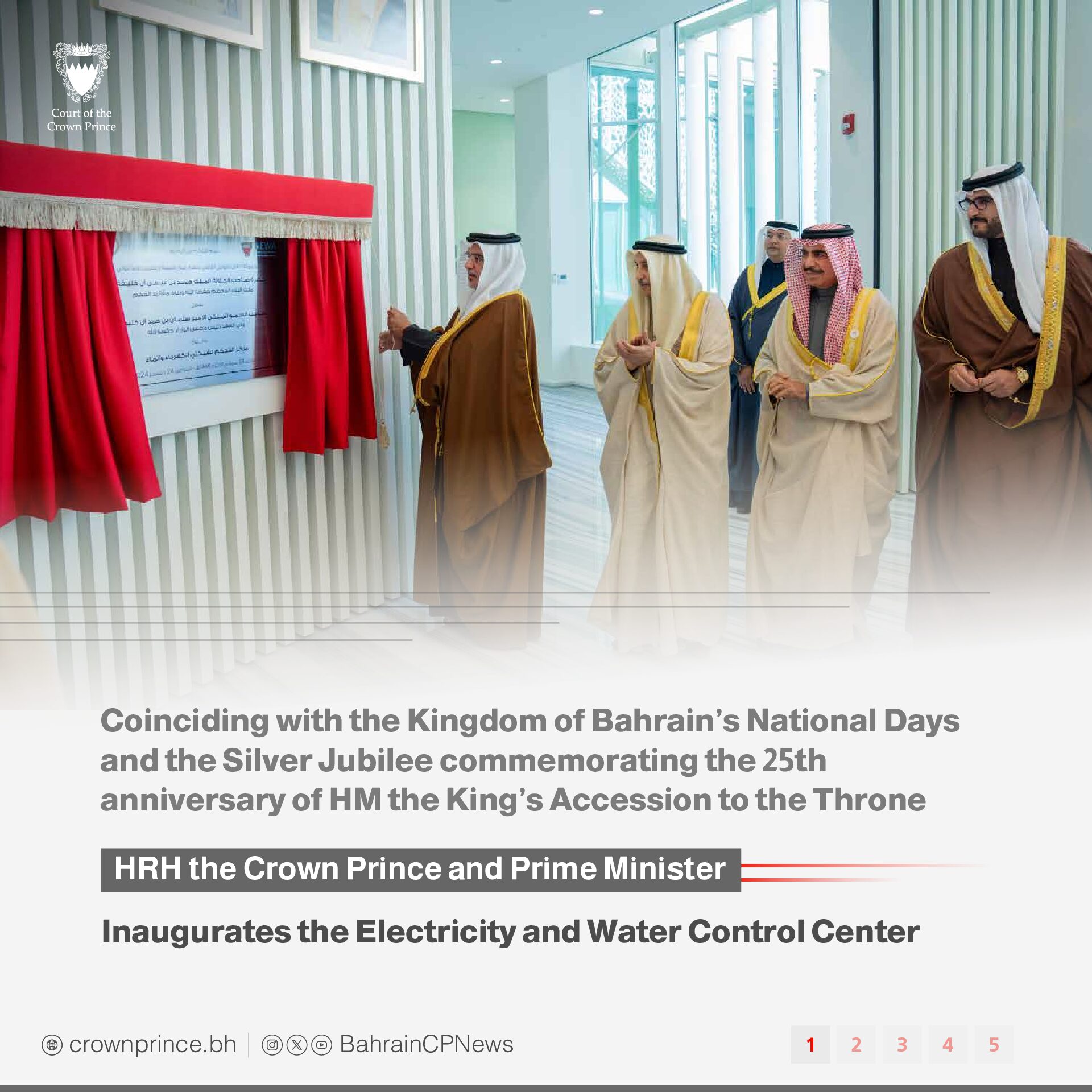 His Royal Highness Prince Salman bin Hamad Al Khalifa, the Crown Prince and Prime Minister, today inaugurated the Electricity and Water Control Center.