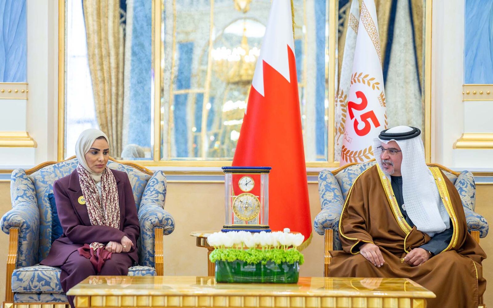 His Royal Highness Prince Salman bin Hamad Al Khalifa, the Crown Prince and Prime Minister, met today with the head of delegations participating in the 44th Session of the Council of Arab Ministers of Social Affairs, at Gudaibiya Palace.
